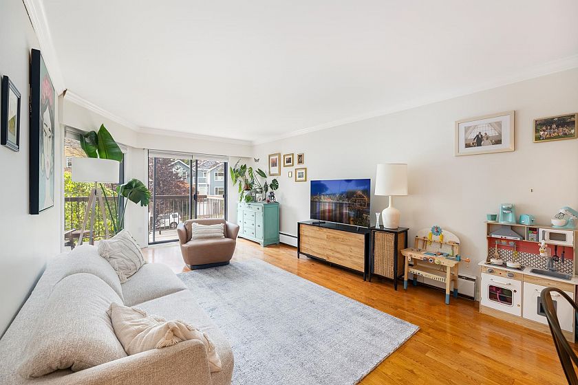 Welcome to this spacious top floor unit at The Shaughnessy, over 900 square feet, and ideally located between Fairview and South Granville, this spacious 2-bedroom home offers bright south-facing views over lush gardens and a quiet tree-lined street. The home features hardwood floors, an open kitchen with ample cupboard space, updated bathroom with granite counters and a large sit-down shower, crown mouldings, and a built-in office nook. The generous primary bedroom easily accommodates house-sized furniture. Enjoy a large, sun-soaked balcony, in-suite laundry, two parking stalls, and a storage locker—all in a well-maintained building steps to shopping, dining, VGH, and transit. Located in a highly sought-after school catchment area.