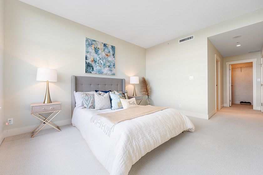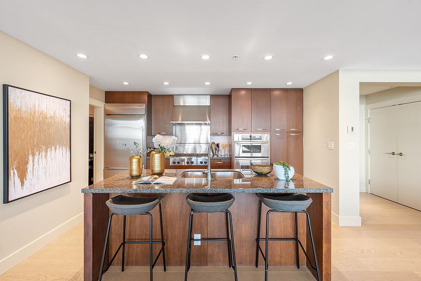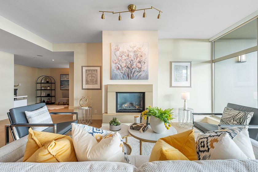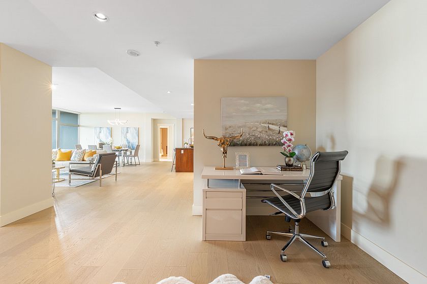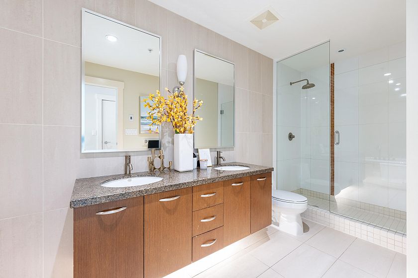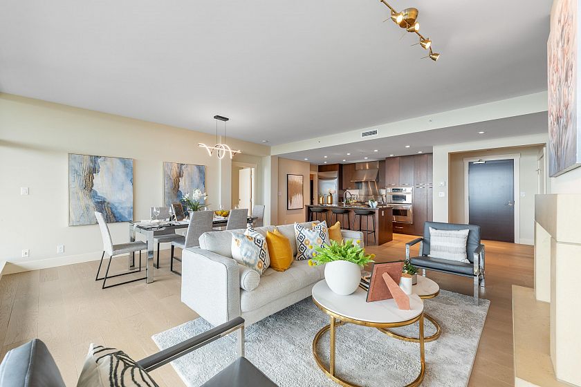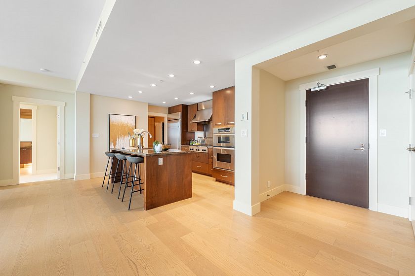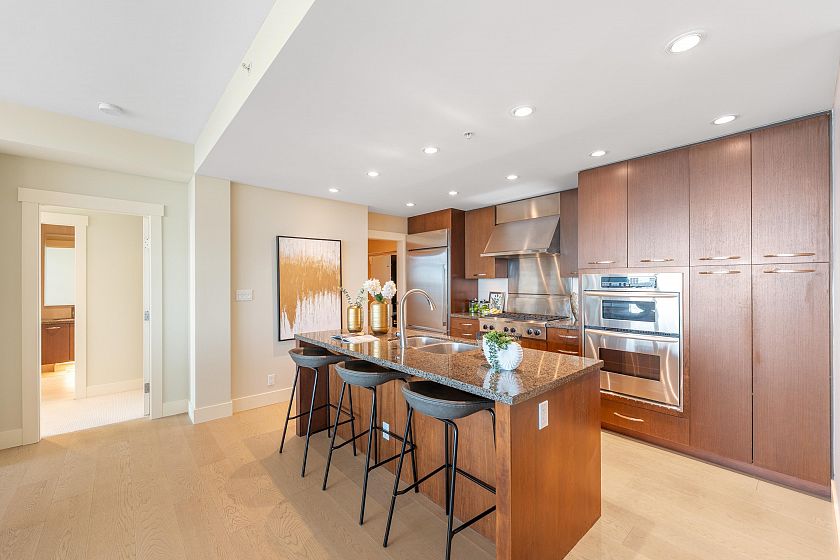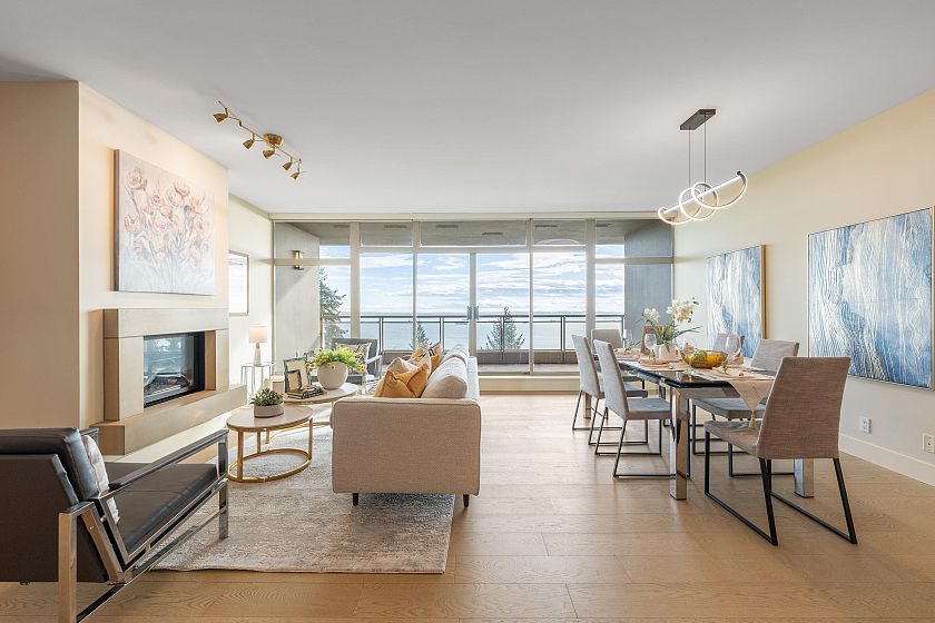 Panoramic Ocean, English Bay, Stanley park, DT and City views Unit in the StoneCliff-a luxury complex on 10 private acres! This South-Facing 2bdrm+2 full bathroom+1 open den has bright, open-design floor plan and comfortable living size with 9’ ceiling. Relax in the living, dinning and family rooms all while overlooking the sky-blue ocean. Stretching from the magnificent Mt. Baker, to the lush green Stanley Park, blending into the elegant English Bay, and flowing into the vast limitless Pacific Ocean. A gourmet kitchen with 6 burner gas stove, stainless steel appliance package. solid 7' Maple entry door, solid core interior doors, wall mounted cabinetry. New hard flooring in the living area and new painting. The Unit has built in AC Private 2 S/S car garage. O H NOV 2, 2-4PM