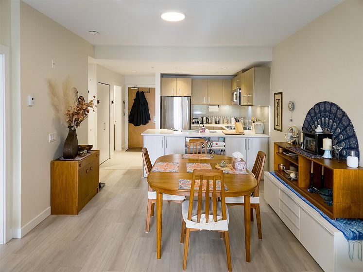 Welcome to SAIL by Award-Winning Adera, nestled in UBC’s sought-after Wesbrook Village. Built to REAP Gold Standard, this modern West Coast home blends natural materials with clean design. This bright 2-bedroom, 2-bath suite features radiant in-floor heating, a gourmet kitchen with granite countertops and stainless-steel appliances. Enjoy a spacious layout, in-suite laundry, and a private north-west-facing patio overlooking a peaceful water feature in the interior courtyard. Includes parking and storage. Steps to campus, shopping, restaurants, parks, and the new dog park. Well-managed strata in a quiet, convenient community. Allows 1 dog/cat. Open Sat Nov 1st, 2-4pm.
