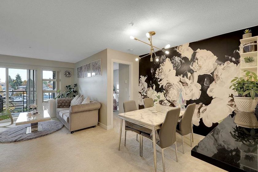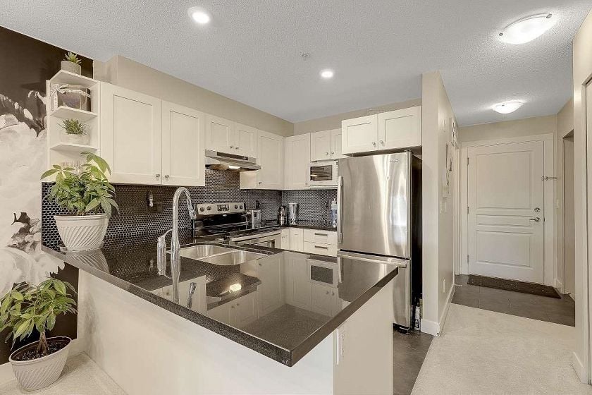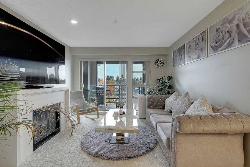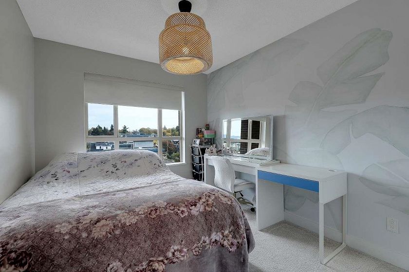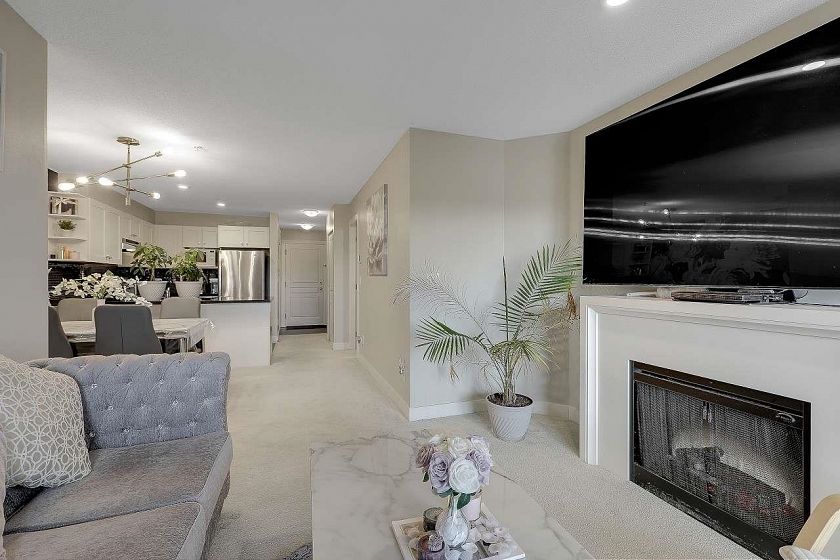 This gorgeous designer East facing, 2-bdrm 2 bath + Den home, at "Century" built by renowned Ledingham McAllister, is a must see. Just move right into this attractive residence situated on the QUIET side of the building overlooking a valley offering optimal privacy. This spacious suite boasts the ideal layout w/ bdrms on opposite sides of the suite & an abundance of natural light from the X-large windows. Tastefully designed kitchen including granite countertops, undermount sink & S/S appliances. Cozy living area, F/P, leading to your covered balcony. Lrg separate dining area, a nook off perfect for an office. Close to groceries, coffee shops, Shoppers, Main St & Hillcrest. EV charging will be available & 2nd parking possible.