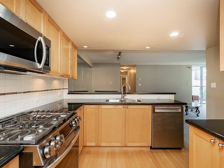 Fabulous Modena at Portico! This spacious 2-bedroom plus den suite offers 1,191 sq ft of comfortable living with pleasant city and mountain outlooks. The open layout includes a generous kitchen with granite countertops, a defined dining area, and a welcoming living room. The primary bedroom features a walk-in closet and a private ensuite with heated floors. Additional perks include 2 parking stalls (EV ready), a large storage locker, bike room, and visitor parking. Built by Bosa Development, Modena is a quality concrete building offering great amenities such as a fitness centre, sauna, steam room, hot tub, and workshop. Ideally situated in a fantastic location—just steps to Granville Island, the Seawall, and the shops and restaurants of South Granville.