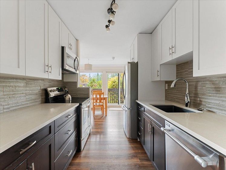Move right in to this beautifully renovated 2 bed / 1.5 bath home offering 1,000+ sqft of stylish, flexible living. Enjoy luxury laminate floors, quartz counters, SS appliances, stone backsplash, and renovated baths. New windows, high-efficiency furnace, and hot water tank mean peace of mind for years to come. Spacious bedrooms plus in-suite storage that doubles as a handy den or office. Cozy up by the gas fireplace or cool off in the outdoor pool. Family & pet friendly! Lynnmour is an outdoor paradise with trails, Lynn Creek, BMX & pump tracks, Inter River Park, and world-class biking & hiking—all with great storage for your gear and easy Hwy 1 access.