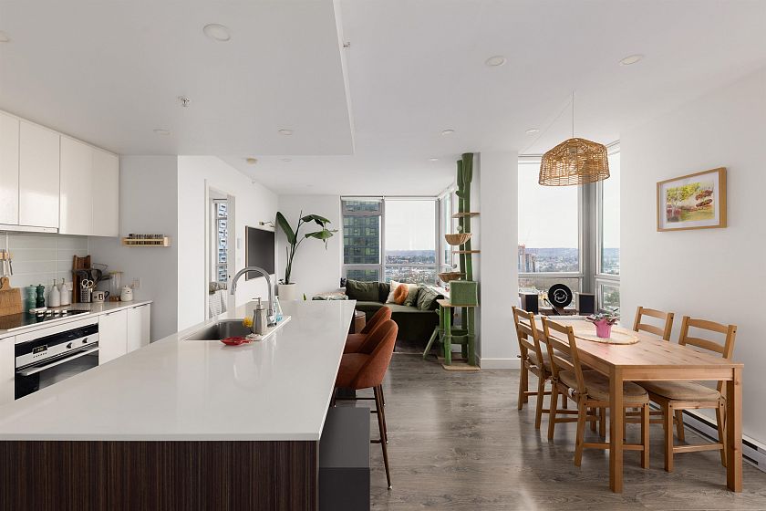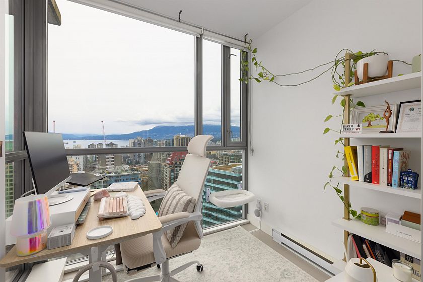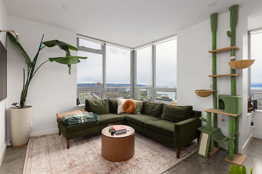 Enjoy the stunning westerly views from this 2-bedroom, 2-bathroom plus den upper-level southwest corner unit at the "Salt" by Concert Properties. Breathtaking panoramic views of the city, mountains, & water from your balcony. The open-concept floor plan is both functional and efficient, with bedrooms positioned at opposite ends for added privacy. Premium California Closets are featured in the master bedroom, second bedroom, & laundry room. This bright, contemporary unit is in extremely well maintained and is located in the heart of the city with everything you need just steps away, including Fresh Street Market, shopping, Yaletown dining, coffee shops, and transit. Sunset Beach, the Aquatic Center, seawall and English Bay are all nearby. Pets & rentals are allowed,1 parking spot included.