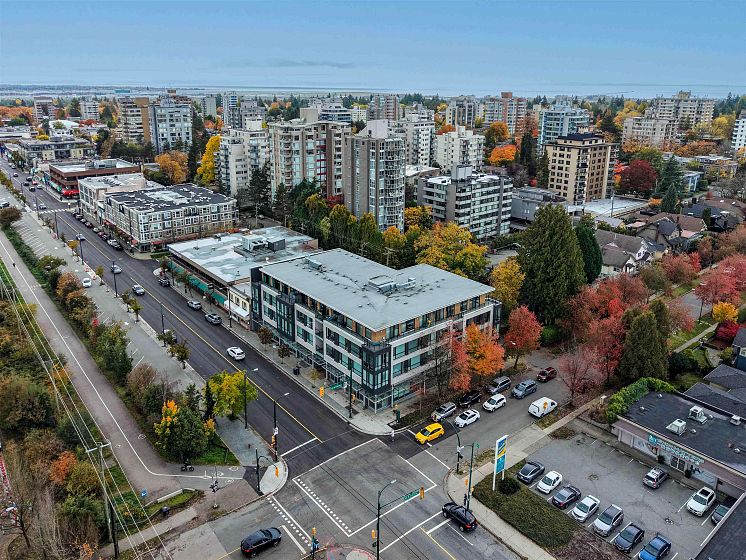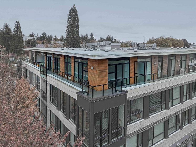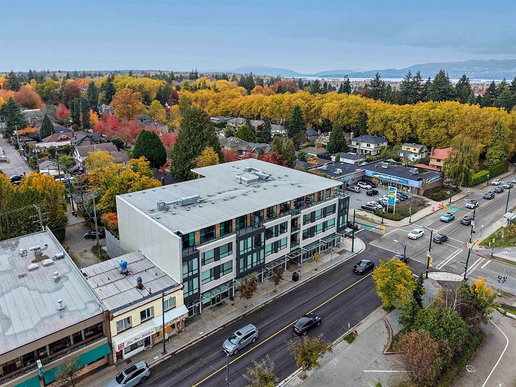 Welcome to Boulevard by Redekop Kroeker Developments, a boutique West Side gem in prestigious Kerrisdale! This quiet upper corner 2 bed, 2 bath home offers 1,021 sq .ft. of bright, stylish living w/ 1 0' ceilings, 327 sq .ft. wraparound patio, freshly updated w/ new carpet+ full repaint, this home is move-in ready.Sleek kitchen features Fisher & Paykel stainless steel appliances, paired w/ oak engineered hardwood flooring for a warm and modern feel. Generous bedrs, in-suite storage, & in-suite laundry enhance everyday comfort. Steps to Kerrisdale Village's charming shops, cafes, restaurants, parks, top schools, and easy transit to UBC, Downtown & YVR. This rare corner residence blends boutique living w/ exceptional outdoor space in one of Vancouver's most beloved neighbourhoods. A must-see