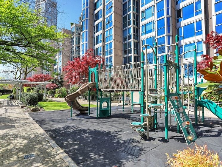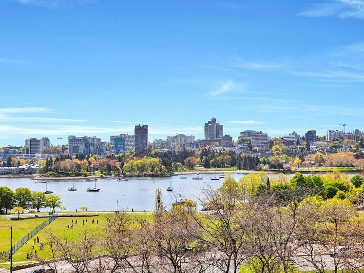 Fully renovated unit with stunning views from every room at "Governor's Villa II". This beautifully updated home offers unobstructed water, park, and city views from the living area and all bedrooms. Features include engineered hardwood floors, an open kitchen with a stylish wet bar, upgraded appliances and lighting, and custom California Closets wall beds in the second bedroom. The den has a high-quality sliding wall system and can be used as a third bedroom or office. Enjoy a spacious balcony, practical layout, and breathtaking views throughout. Located just steps from the Seawall, David Lam Park, SkyTrain, and Yaletown’s dining and shopping. Residents also have access to exceptional amenities including a pool, hot tub, sauna, gym, and garden. A rare opportunity & A must see!!