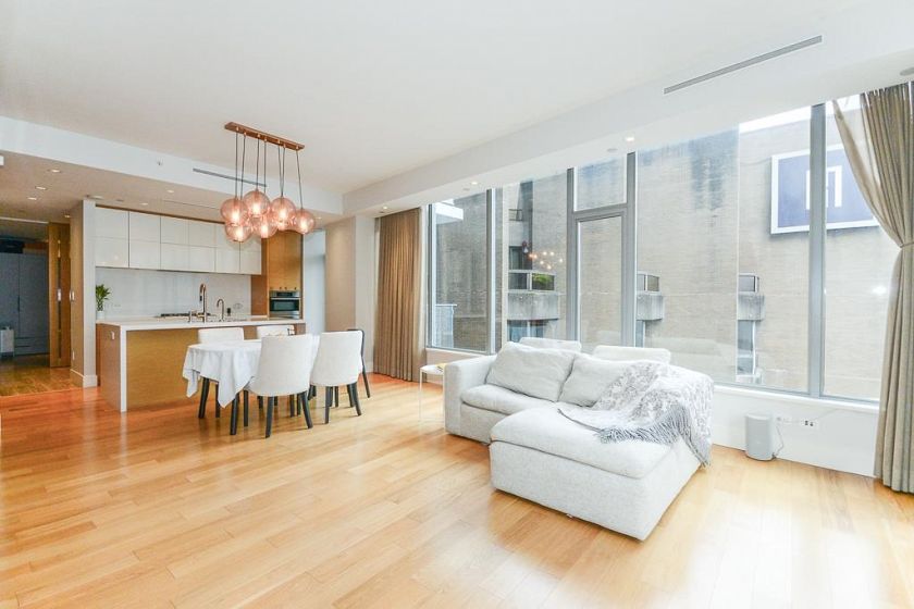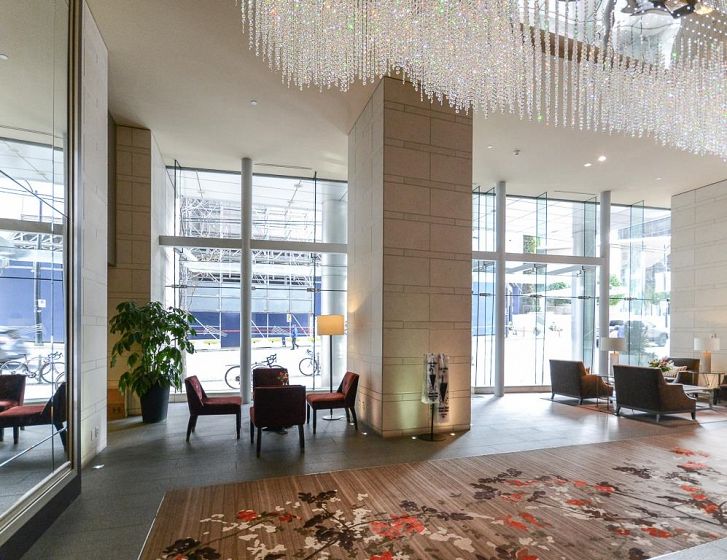Private Residences at Hotel Georgia! This spacious 2 bedroom corner unit features open floor plan, floor to ceiling windows, over height ceilings, unsurpassed design and luxury finishing. The unit starts with an oversized mahogany entry door, completed with custom millwork & cabinetry, gorgeous kitchen, spa-like bathroom and elegant light fixtures. Huge master bedroom with walk-in closet and the guest bedroom doubles as a media room or den with sliding wall system. Enjoy the privileged hotel services and exquisite amenities including 24 - hours concierge, salt water indoor-pool, spa treatment, large gym, billiard room and theatre room. Great storage room at the parking spot and the luxury lobby.