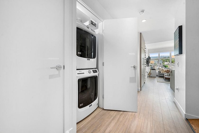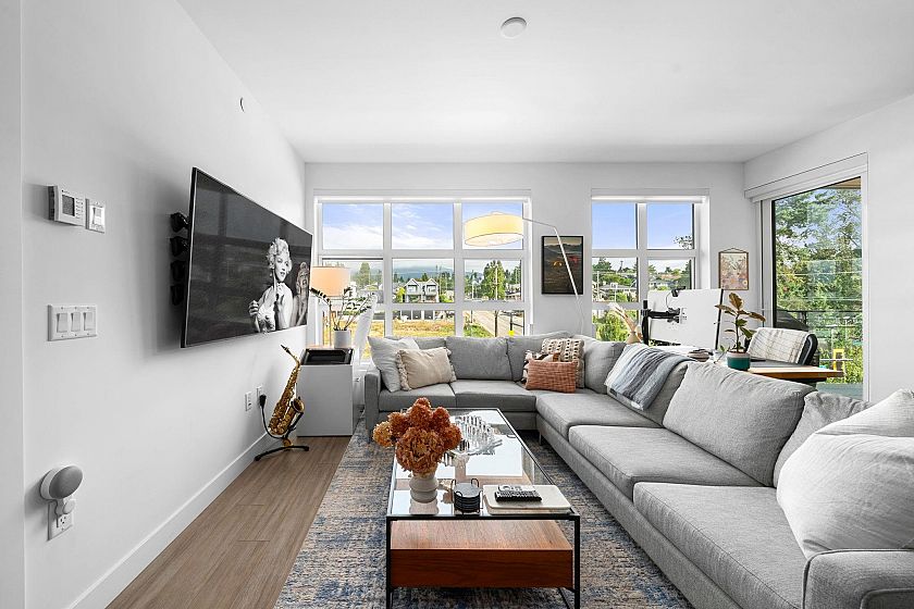 Top-floor stunner at The Green on Queensbury! This over-1,000 sq ft 2-bedroom + office home has only ever had one owner and feels like new, with a distinctive kitchen island, high-end appliances, and a covered deck with custom outdoor furniture and tiling that frames beautiful northeast views. You’ll get two rare side-by-side parking stalls wired for EV charging and access to great amenities including a gym and rentable guest suite, plus Moodyville Park— the best kids’ playground in North Van—right outside your door. Just a short stroll to breweries, restaurants, coffee shops, the SeaBus, and Lonsdale Quay, this home blends coastal luxury with everyday convenience in one of North Vancouver’s most vibrant communities.
