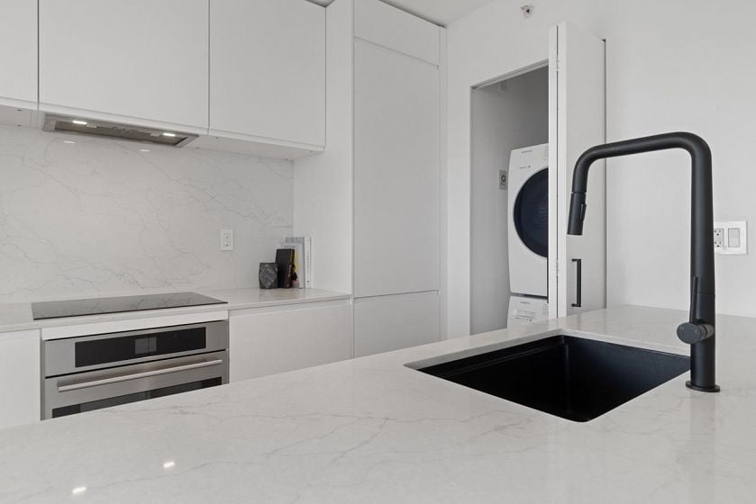Enjoy Coal Harbour, mountain, False Creek & downtown views from 30th floor corner unit! Efficient layout 2-beds, 2-baths & 2 balconies. Renos include wide-plank oak engineer floors, smooth ceilings, auto roller shades, light fixtures, laundry & a gorgeous kitchen. Kitchen features Calacatta-style quartz counters w/ tall backsplash, matte cabinetry, secondary interior drawers w/ auto lighting & integrated appliances (fridge, dishwasher & hood fan). Sleek European 'Fulgor Milano' wall oven, 'Smeg' induction 4-burner cooktop, & microwave. Tasteful black resin under mount sink & tall faucet. Primary bed also has private balcony. 'Yaletown Park 2' has completed building exterior maintenance project, concierge, exercise centre, party room & guest suite.