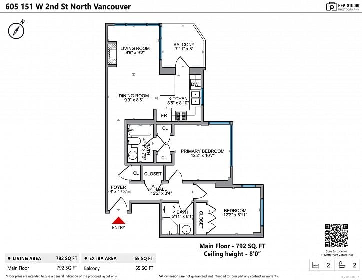 Come check out this bright 2-bedroom, 2-bathroom concrete suite, just a half block off vibrant Lonsdale Avenue! Built in 2005 with concrete construction and rain screen technology, this pet-friendly building allows rentals, making it ideal for living or investing. Enjoy NW exposure with floor-to-ceiling windows showcasing partial bridge and mountain views. The open-plan kitchen boasts brand-new appliances, a natural gas range, and a covered BBQ deck. Recent flooring and paint updates make this property move-in ready. With a new piping system and robust contingency fund, the building ensures reliability. Includes parking, storage, and Lonsdale Energy heating. Steps from the SeaBus, North shore Community Centre, and shops. Call today!