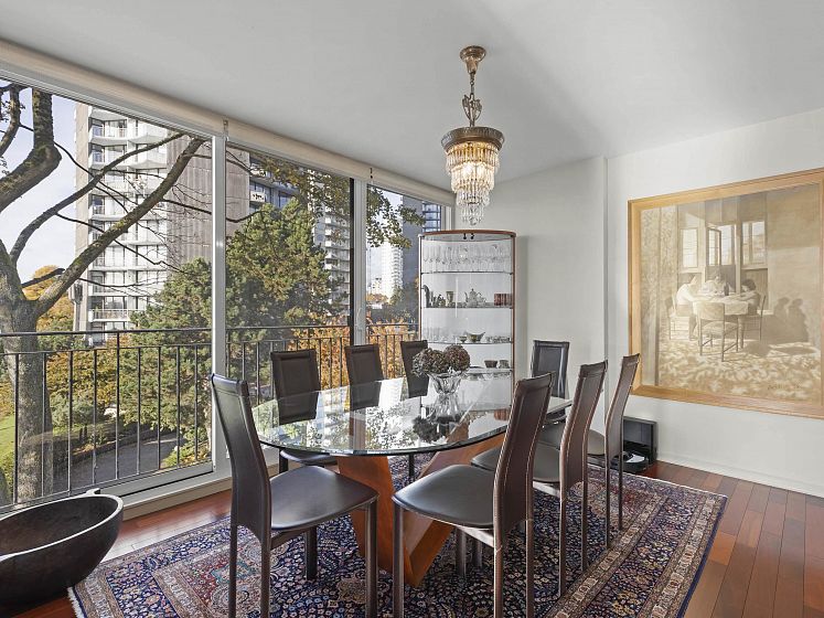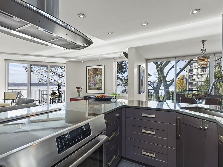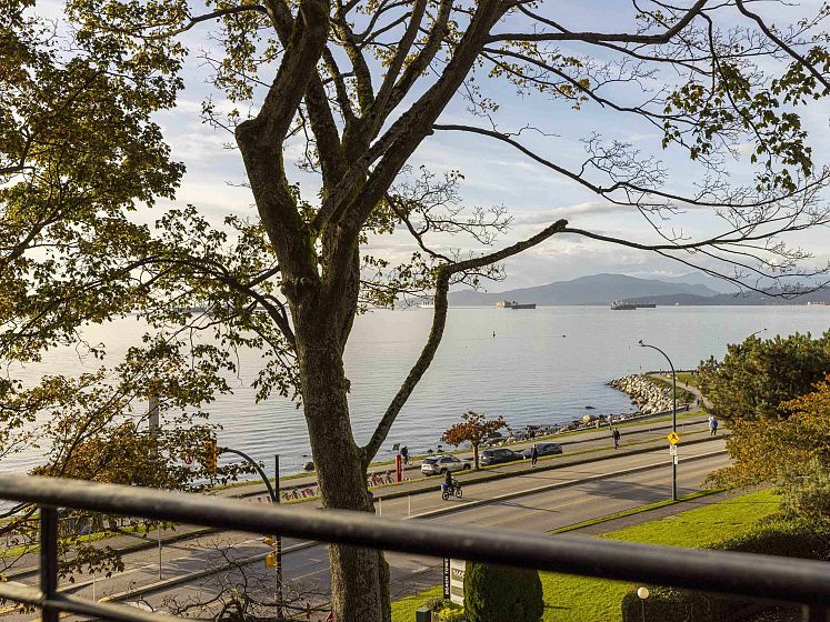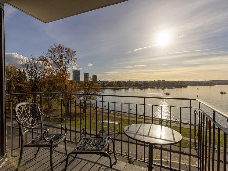 Unobstructed English Bay views from every room; living, dining, and both bedrooms set this Plaza Del Mar residence apart from the rest. Thoughtfully renovated to a high standard and impeccably maintained, this home offers an open-concept kitchen, spacious living and dining areas, and a smart split-bedroom layout for added privacy, perfect for guests or a home office. The generous primary suite features its own Juliet balcony, while a covered main balcony and additional Juliet off the dining room invite in ocean breezes and sunset light. Plaza Del Mar is a well-cared-for building in one of Vancouver's most desirable waterfront locations. A rare offering for those who value the quality, an incredible view and the West End.