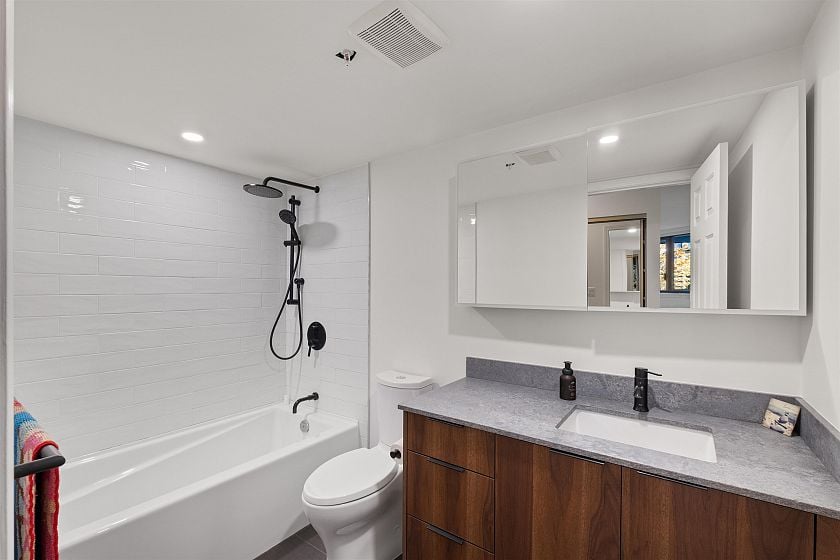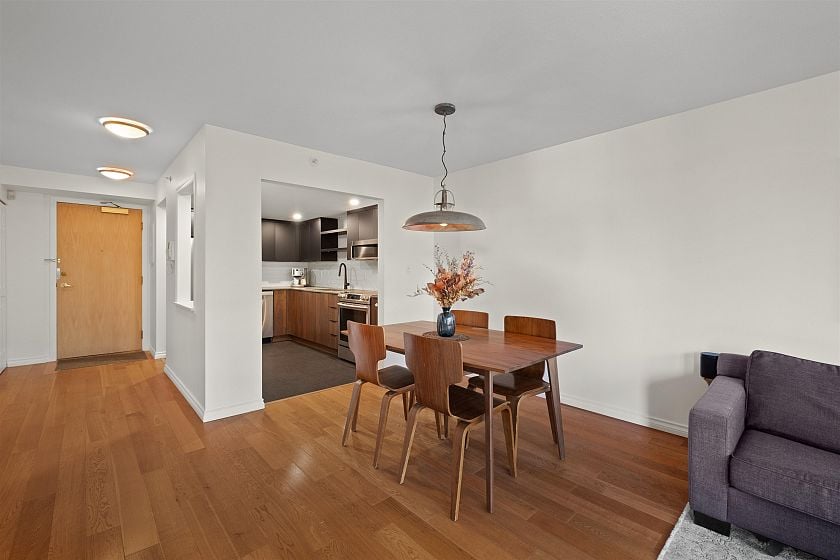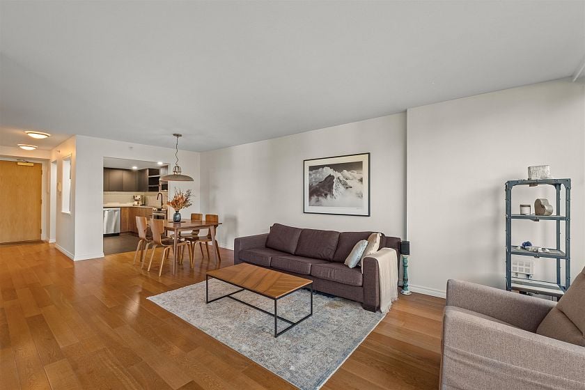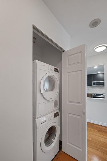 Meridian Cove – a premier concrete residence, fully rain-screened in 2023 with new triple-pane windows and is now EV-ready. This beautifully renovated 2-bed, 2-bath home showcases hardwood floors, a modern kitchen with stone countertop, stainless steel appliances, and updated bathrooms with elegant finishes. Thoughtfully designed by Urban Presentations, the cohesive interior exudes warmth and sophistication. A quiet west-facing outlook enjoys views of the tranquil inner courtyard. This suite includes 2 parking and a locker. Residents enjoy resort-style amenities including a saltwater pool, hot tub, sauna, steam room, fitness centre, garden courtyard, library, and hobby rooms. Steps to Granville Island, West 4th, and Broadway’s cafés and boutiques. Very proactive and sought after building!