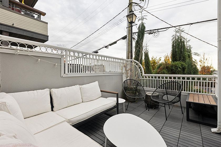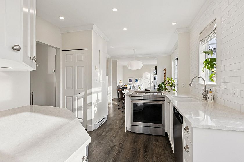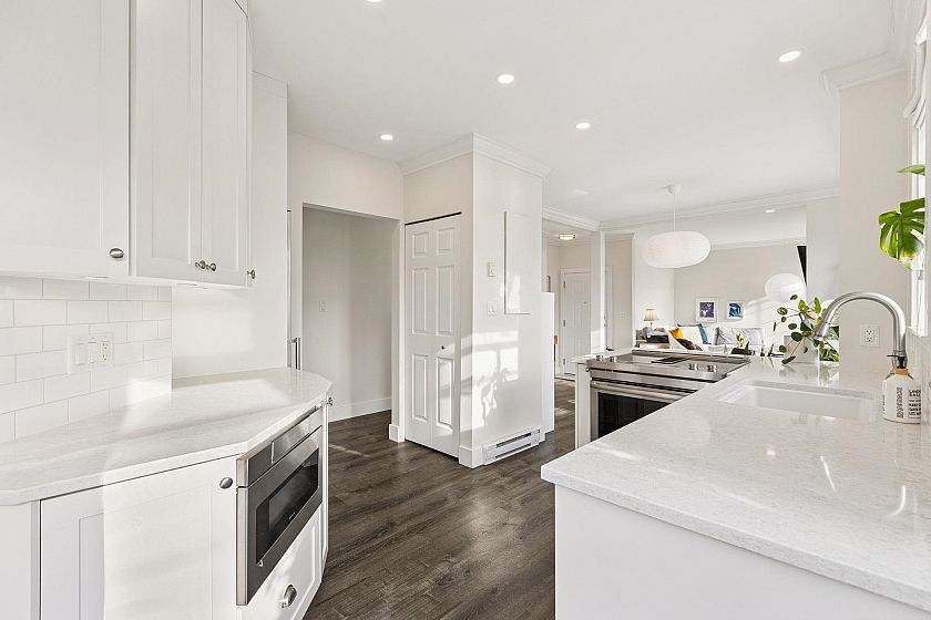 Beautifully renovated 2 bed / 2 bath condo in the heart of Dundarave! This bright, open-concept home offers over 1,000 sq. ft. of stylish living with 3 outdoor spaces, perfect for entertaining or relaxing. Tucked away on the first floor with its own gated entrance, it feels like a private retreat. The modern kitchen features stainless steel appliances, quartz counters, and a charming bay window dining nook. Enjoy cozy evenings by the gas fireplace, serene ocean views, thoughtful updates and high ceilings throughout. Steps to the seawall, shops, and cafés – this is West Vancouver living at its best! Includes 1 parking & a large storage room.