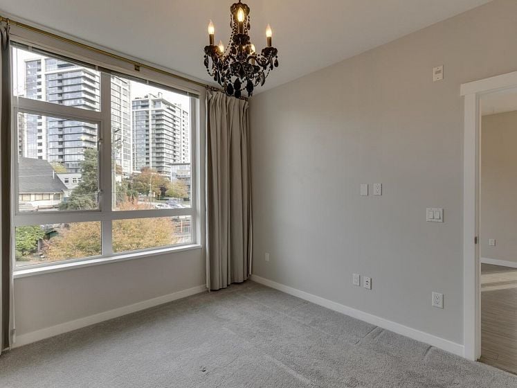 Stunning 2 bedroom, 2 bathroom Northeast corner suite at The Queen Mary by Polygon! This beautifully updated residence features new paint and carpets, custom millwork & designer lighting. The bright, open layout offers 9’ ceilings, heated floors, an electric fireplace, and a spacious covered balcony with lovely North Shore mountain views. The gourmet kitchen includes stainless steel appliances, ample cabinetry, and a cozy eating area with direct balcony access. The generous primary bedroom boasts a walk-in closet and spa-inspired 5-piece en-suite, while the second bedroom and full bath provide excellent flexibility. Includes EV parking stall and storage locker. Steps to Victoria Park, Whole Foods, shops, cafes, restaurants, and transit in the heart of Central Lonsdale! Pet Friendly!