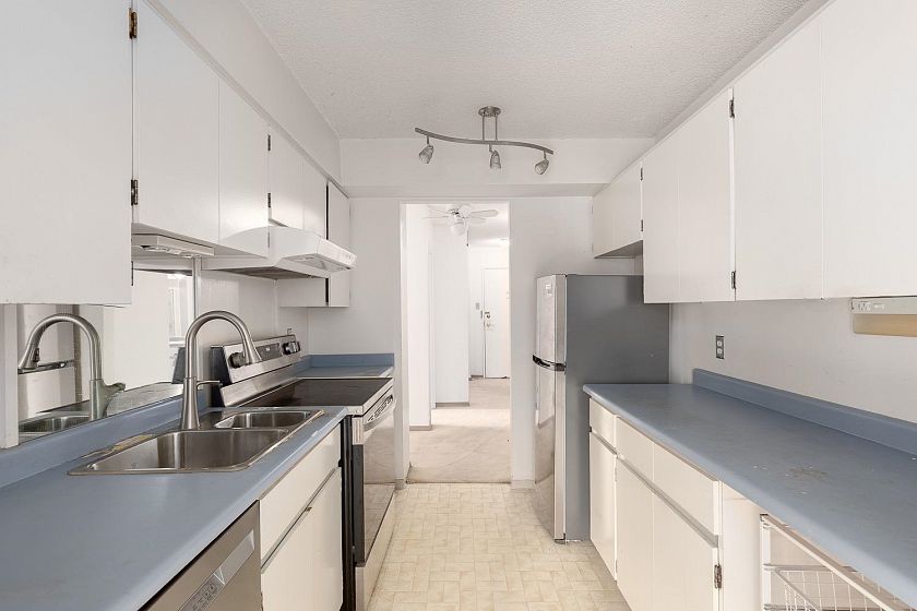 EXCELLENT opportunity to own a large condo in a great building ( Capilano ). The unit is in original condition, but it offers a great upside for those seeking space and a desirable location. With 1122 sq ft of indoor space, it can accommodate downsizers or a small family. The oversize in-suite storage could be used as a den. The building has undergone substantial updates and offers excellent recreational facilities. The upgrades include: plumbing replacement, roof replacement, and elevator upgrade. The common area, including the lobby area, has been renovated, and the Parkade membrane has been replaced. Quick possession is possible. TAKE ADVANTAGE OF THIS GREAT PRICE!