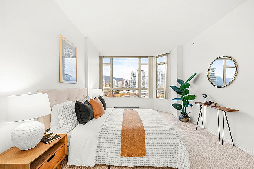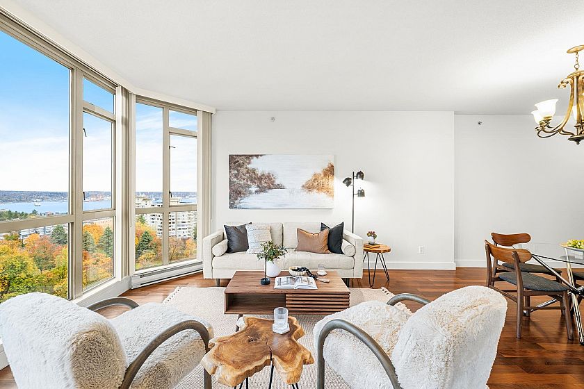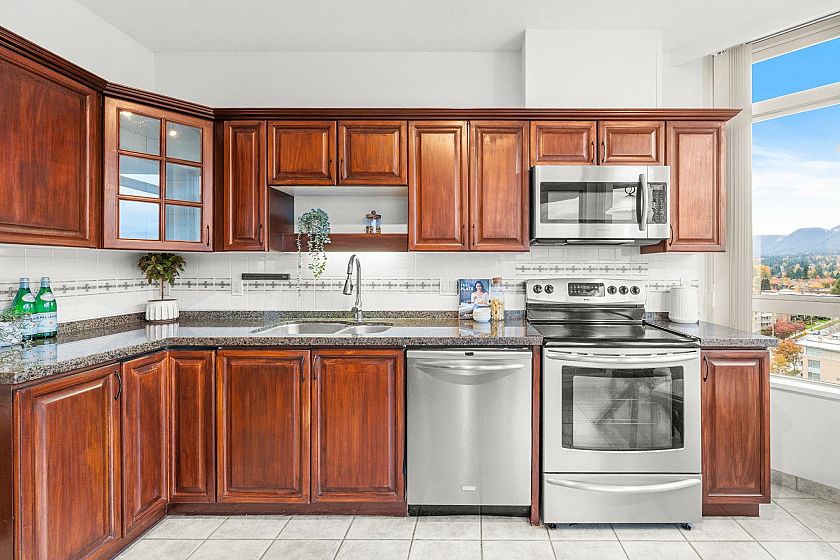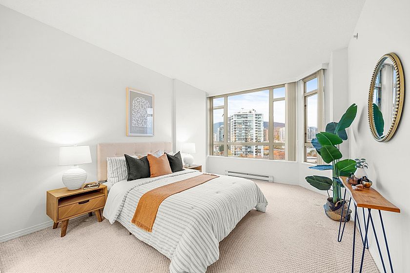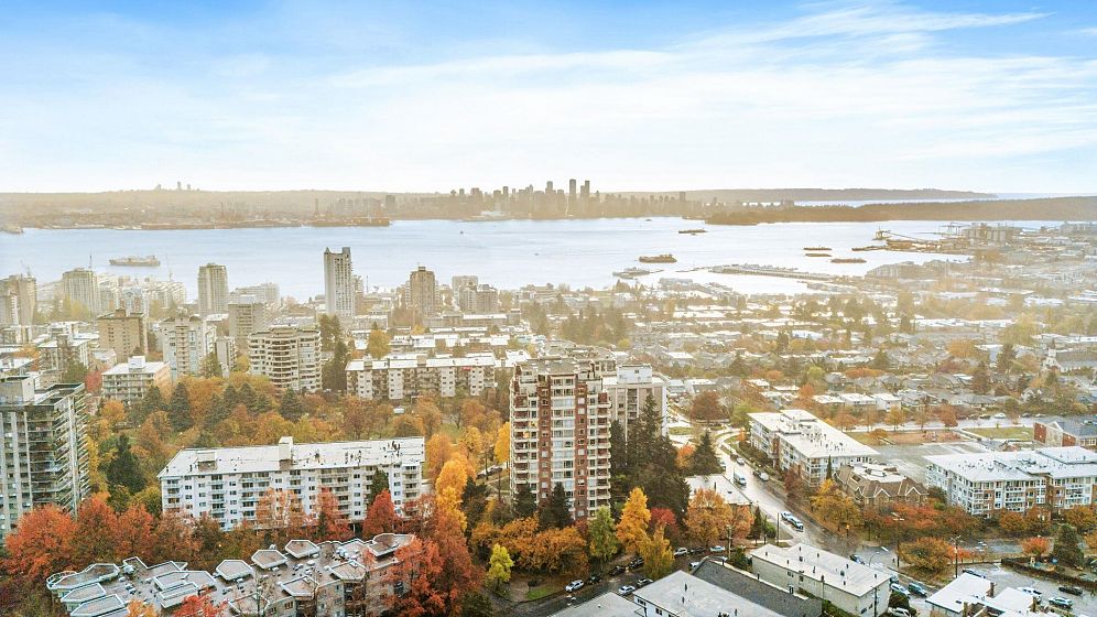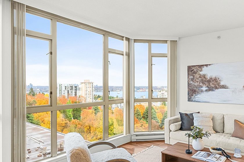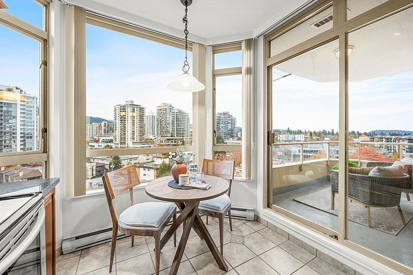 You’ll love this incredible corner suite at Victoria Park West with breathtaking 240° views from the North Shore Mountains to Burrard Inlet, Downtown Vancouver & Mt Baker—a panorama that glows w/ sunrise light & sparkles at night. This bright 2 bed, 2 bath home in a sought after concrete building beside beautiful Victoria Park features 9’ ceilings, floor-to-ceiling windows, hardwood floors & a layout that easily accommodates full sized furniture. Enjoy a bright kitchen w/ granite countertops & a cozy eat-in nook. Entertain guests in dining room or get cozy in living room w/ gas fireplace. Covered balcony perfect for morning coffee or sunset views. Freshly painted & move-in ready, with fitness centre, hot tub, sauna, guest suites & gardens. Steps to shops, restaurants, Shipyards, & SeaBus.