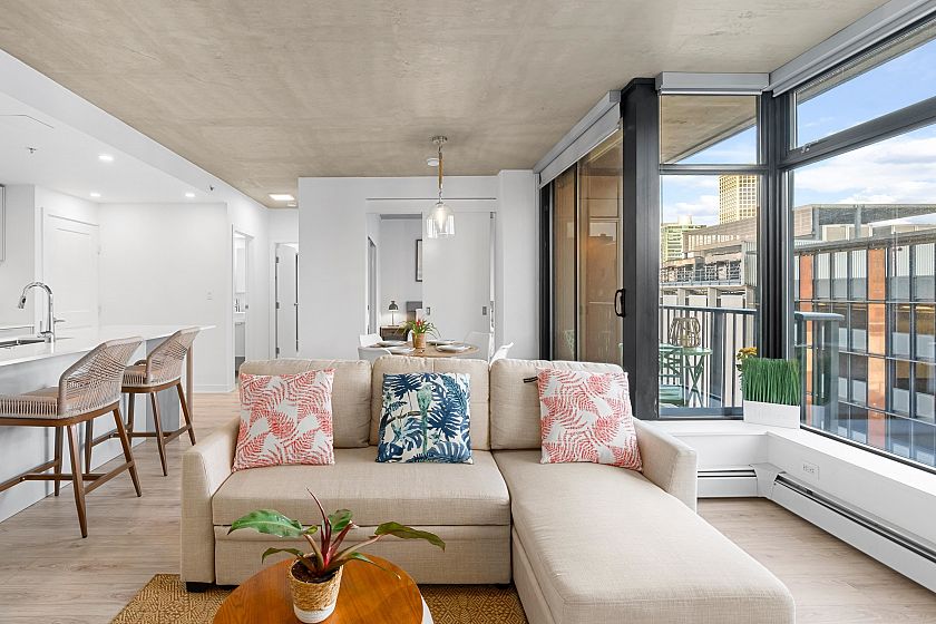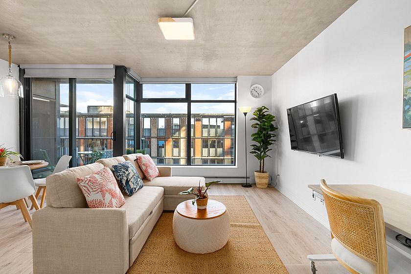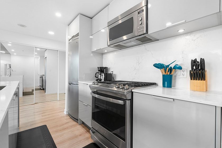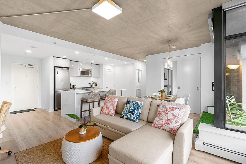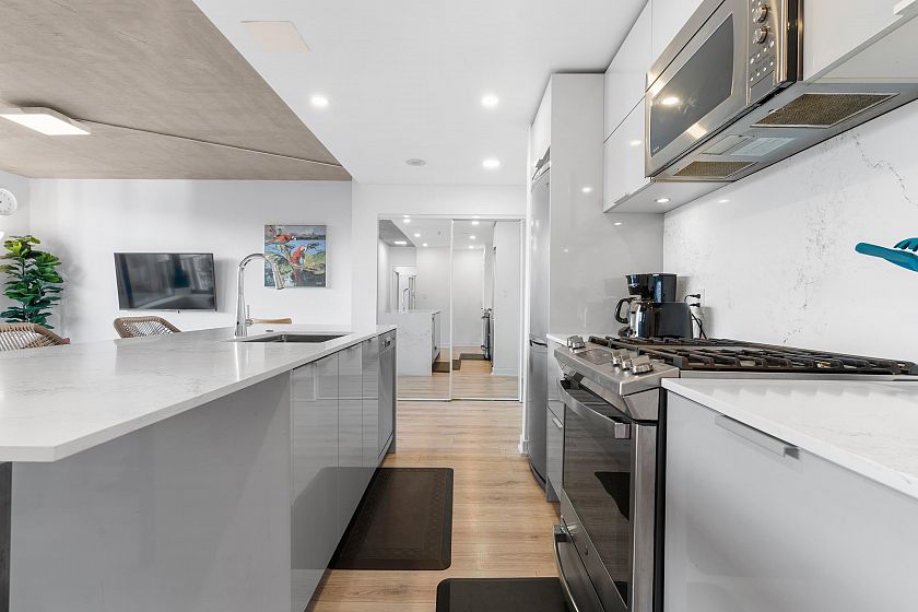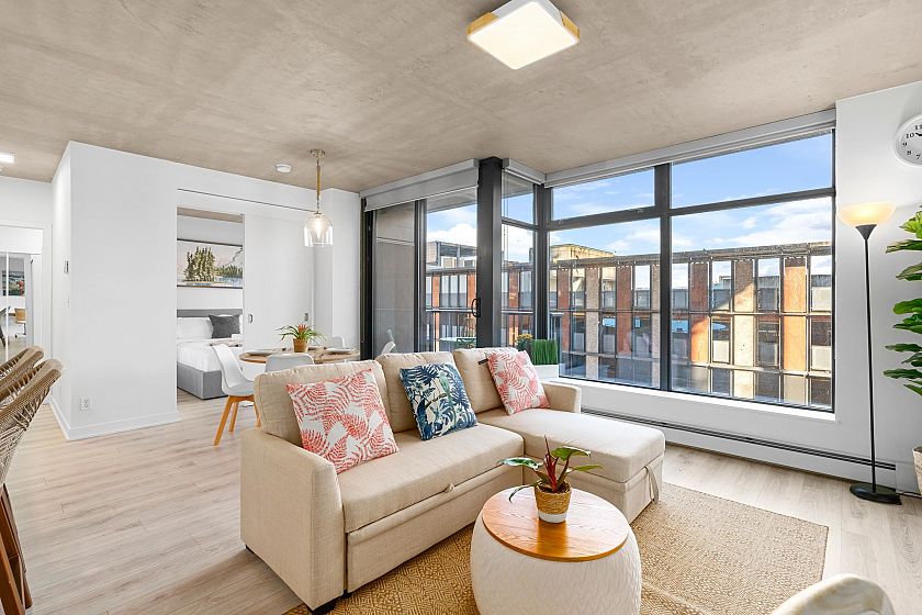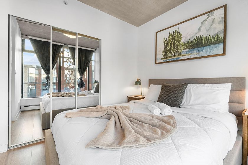 INVESTOR ALERT – AIRBNB FRIENDLY! Live or invest in the iconic Woodward’s Building in historic Gastown. This renovated 2 bed, 2 bath North-facing home features new grey laminate floors, custom closets, glass shower doors, stone countertops, pantry, gas stove, and S/S appliances. Smart square layout with spacious bedrooms — the primary includes a soaker tub and separate glass shower. Enjoy polished concrete ceilings, balcony, and top-tier amenities: full gym, rooftop hot tub, and deck with city & mountain views. Heat & internet included in strata fees. Price includes all furniture if desired and 1 secured parking. Pets & rentals allowed. Steps to shops, dining & transit — perfect for investment, to host guests for World Cup, or to enjoy yourself, the possibilities are endless.