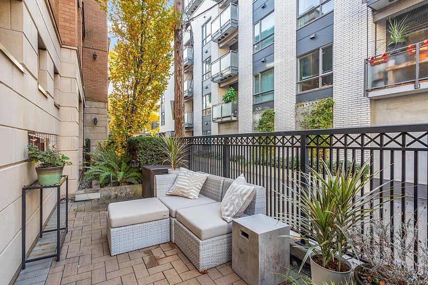 Sophisticated “Sydney is a meticulously maintained brick & concrete building in the coveted Arbutus Walk neighbourhood. Savour the 2 bedroom + den home with an exquisitely renovated kitchen and bathrooms. Enjoy the over height ceilings & doors that add a European flair to the bright, light-filled open concept living space & a generously proportioned office/ den + lovely walk-in closet. Entertain inside or bbq on your north and west facing patios & enjoy 1 parking stall + a bike storage. The building has also recently added EV charging infrastructure that allows for personal charging installations. Steps away from the amazing Arbutus Greenway, the new Skytrain station & exclusive shops and restaurants along Broadway, trendy 4th Ave. and South Granville. It is quite simply, spectacular!