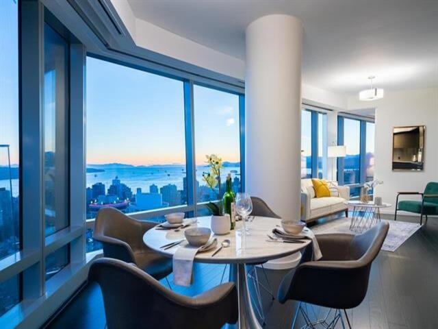 Stunning 180 degree Unimpeded VIEWS of Ocean, English Bay, North-Shore Mountains, Lions Gate Bridge & Stanley Park, Coal Harbour. Designed by Arthur Erickson, sitting in the heart of Downtown Vancouver. This luxurious 2 bdrms & 3 bathrooms (all ensuites) plus den feature 1,167 sqft living spaces, Italian kitchen with Gaggenau appliances, wine fridge, steam oven. Upgraded with Italian closets, art lighting, wall paper. Enjoy the convenience of A/C, and smart home technology. World class amenities: Drai's pool bar & night club, Mott 32 fine dining Chinese restaurant,Spa, Tecnogym fitness Centre, Rolls Royce hotel car services and 24/7 Concierge. 1 PARKING and 1 locker. Absolutely AMAZING!