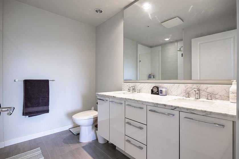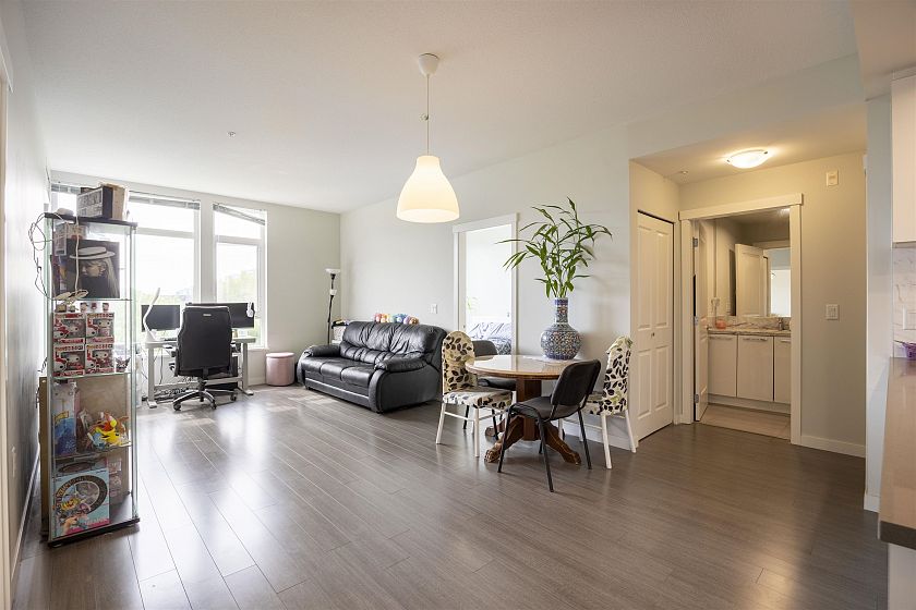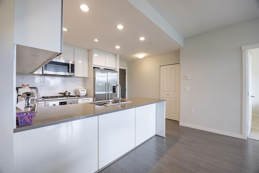 Welcome to your new Vancouver home at Rhythm by Polygon! Over 900 SF, bright & open, 2bed + Den, 2bath, Bedrooms are generous in size with large closets & ample separation on opposite sides of the home. Quiet SW Facing unit boasts clean and modern finishes featuring engineered stone countertops in the kitchen, sleek stainless steel Bosch and Fisher & Paykel appliances, built-in gas cooktop, in-floor radiant heating and high-ceilings. Amenities features a club house, full-size gym with squat rack, library/lounge & dog wash/groom station. Supermarket, restaurants, and Community Centre, Everything Wine & more nearby. This bustling riverside community living at River District has it all!