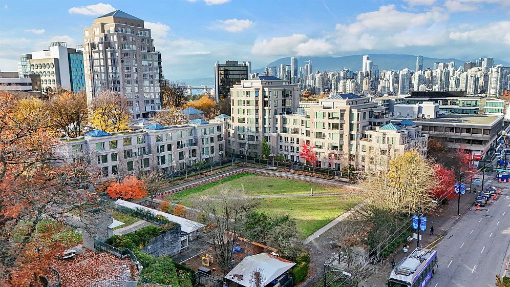 PENTHOUSE PERFECTION with sweeping views of English Bay, the City & North Shore Mountains! This beautifully maintained unit offers two generous bedrooms and a large flexible den with an expansive open layout ideal for entertaining or relaxing in style. The kitchen features sleek quartz countertops, modern cabinetry, and premium appliances designed for everyday luxury. Enjoy unmatched privacy with no neighbours on three sides and unobstructed 180° panoramic views from every room. Steps from the SkyTrain, shops, and restaurants