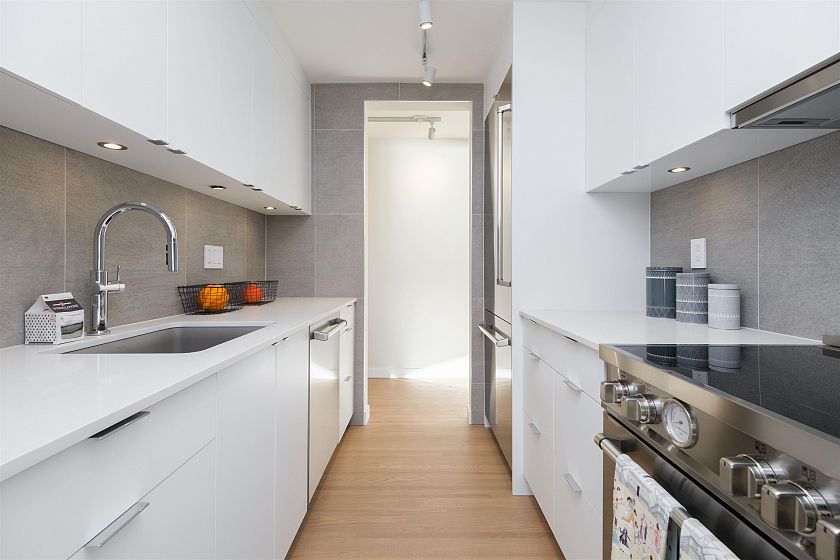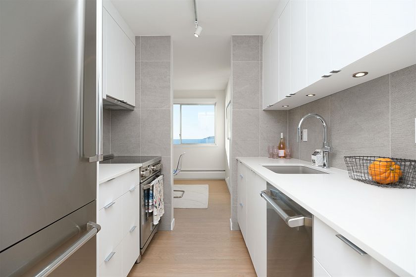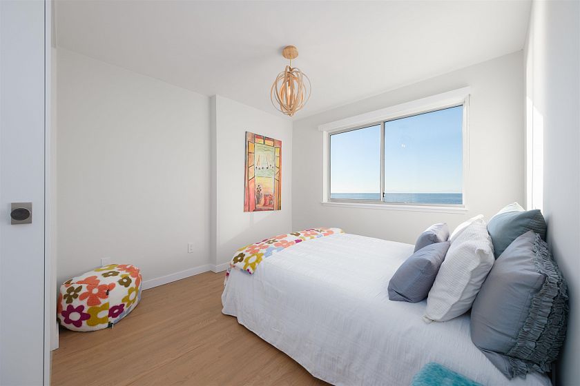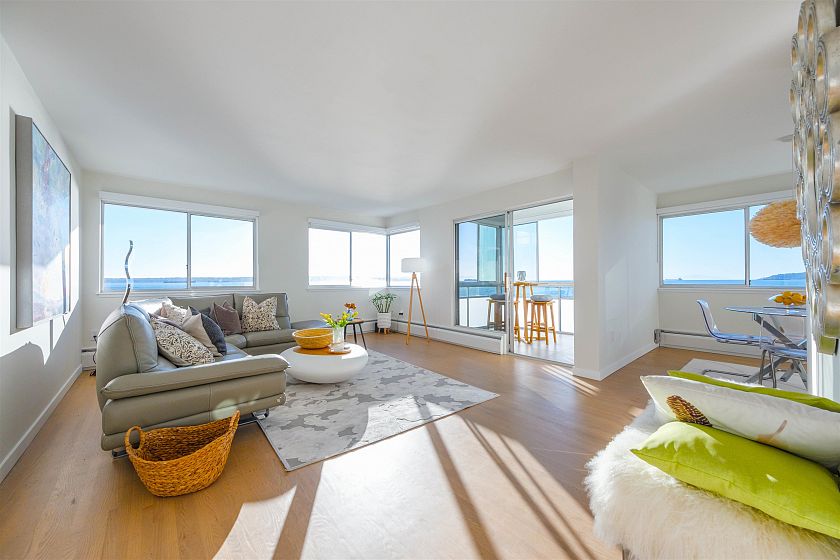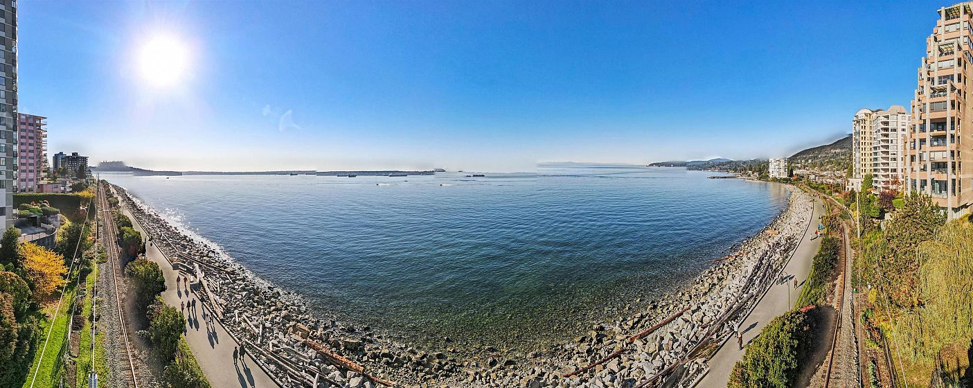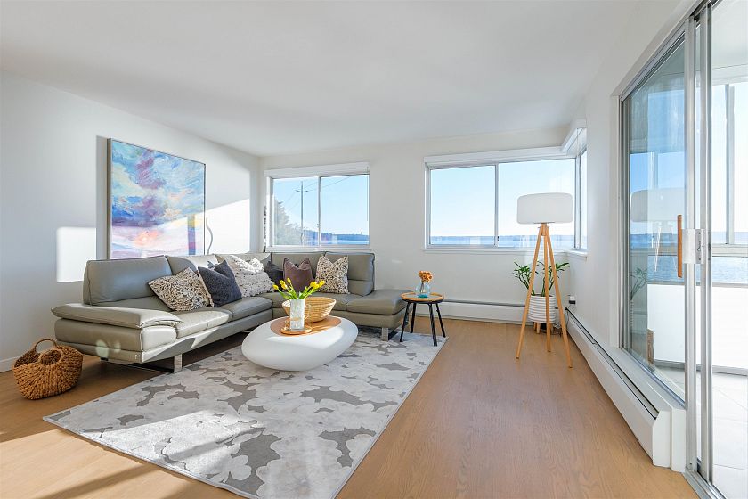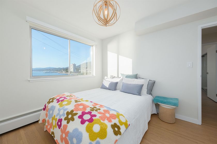 You can't get closer to the waterfront!Experience West Van Dundarave lifestyle in this completely renovated (2024) 2-bedroom 2 bthrm townhouse-style home on seawall, crafted to perfection by Montgomery Design. SE corner, main floor above ground offers stunning water views from every room and the ultimate convenience 2 parking spots at your front door, no stairs or elevator needed! The Dolphin is one of WV's best buildings with H/W floors, gourmet kitchen with high-end Italian appliances, luxurious bathrooms with quartz and marble finishes, insuite laundry. Direct seawall access from building, common garden, free laundry room, 2 storage spaces, party room with panoramic views. Steps to WV Rec Centre, village, shopping. Strata Contingency $1M. This is a great managed building! A must see