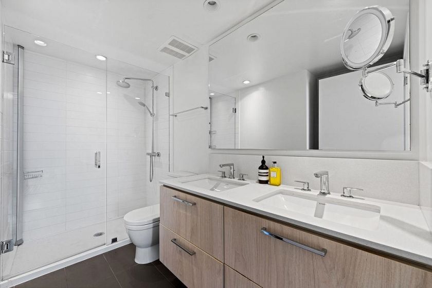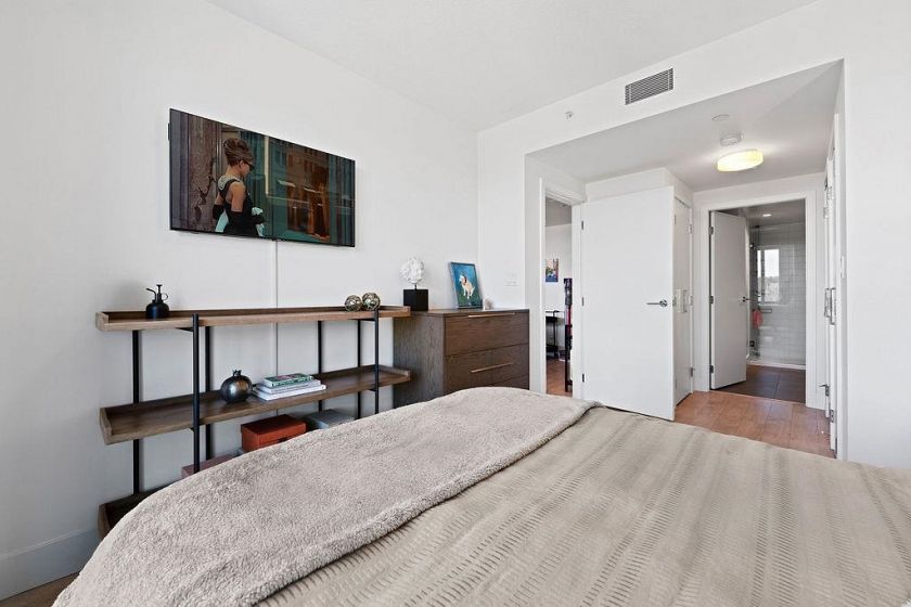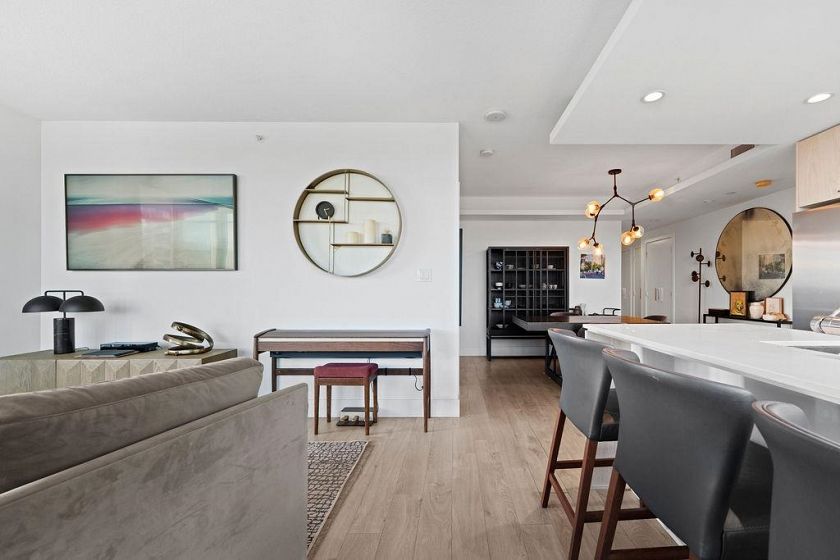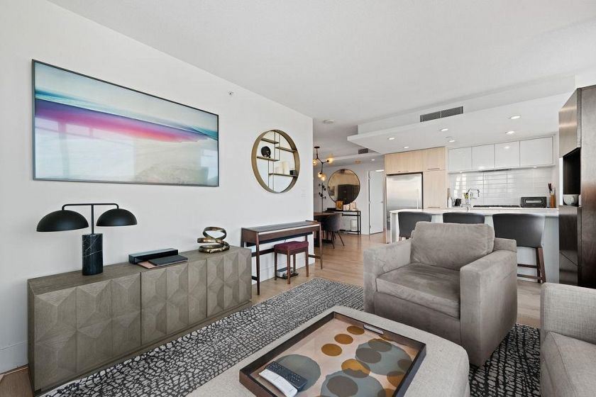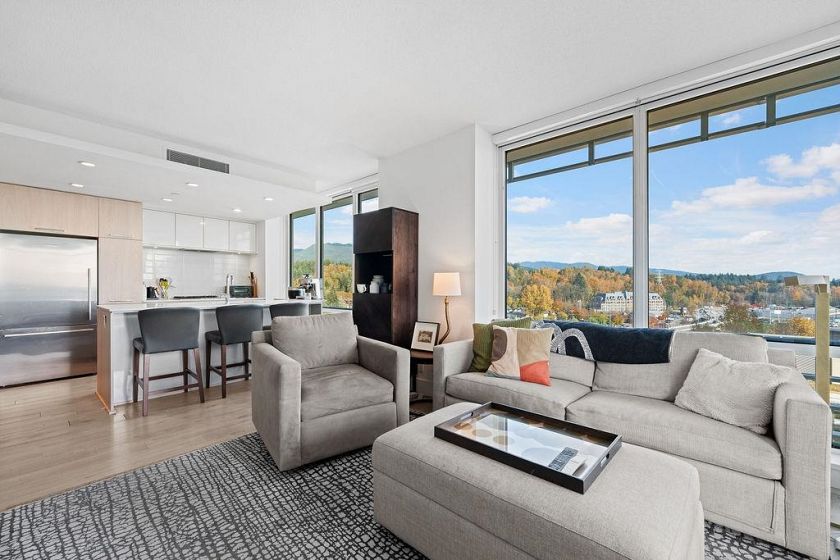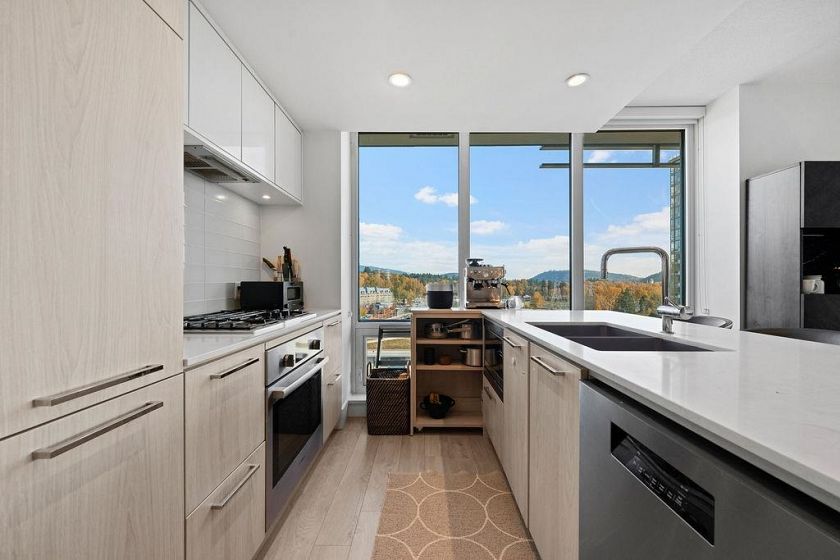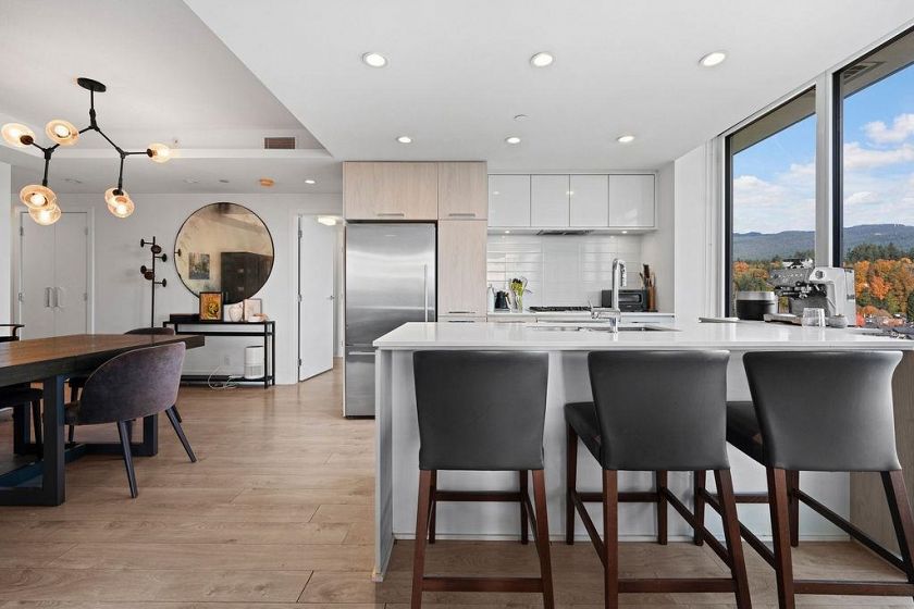 Discover this corner 2-bedroom residence offering bright multi-directional light and privacy. An open layout with wide windows showcasing city and mountain views, a modern kitchen with quartz counters, a gas cooktop, and a generous island, plus a welcoming dining area. The primary suite features ample closets and an ensuite with a walk-in shower, while the second bedroom is bright and flexible, paired with a full bath with a deep soaker tub. You get A/C, in-suite laundry, storage, underground parking, and a covered balcony with gas for BBQ. Residents enjoy the Denna Club’s state-of-the-art gym, 25m indoor pool, sauna, steam room, and lounge, offering resort-style comfort every day. All of this places you moments from trails, shops, and transit, making daily life effortless!