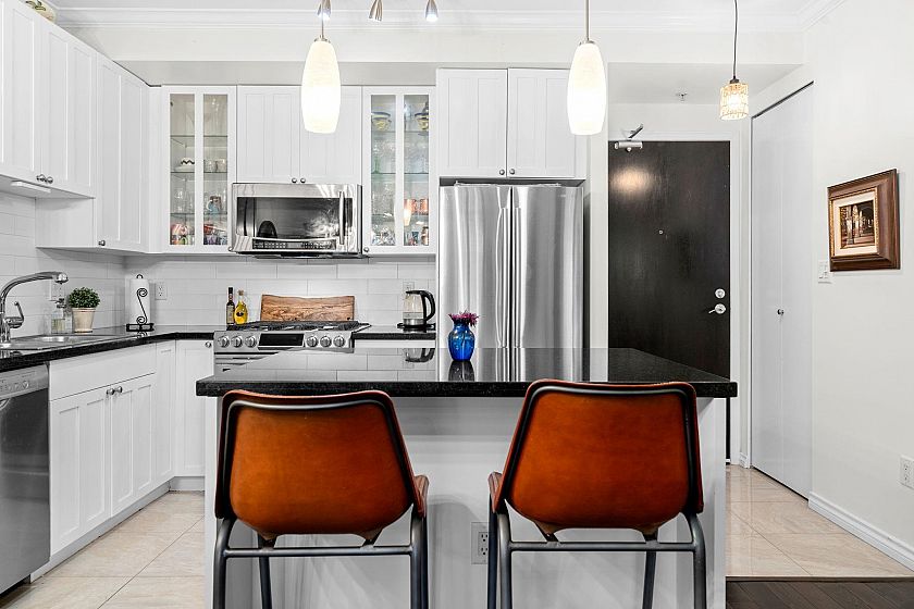 Lower Lonsdale's award-winning One Park Lane delivers luxury with a rare edge: no suite above you. This renovated 2-bed/2-bath showcases 9' ceilings, floor-to-ceiling windows, and a gas fireplace that anchors the open plan. The chef's kitchen with granite counters, premium stainless appliances, Grohe fixtures is perfect for hosting. City and harbour views shimmer through treetops and your private sundeck extends the living space beautifully. Solid concrete construction ensures peace and permanence and this home comes with EV-ready parking plus storage locker. Building amenities include gym, social lounge, private theatre, and stunning landscaped courtyards. Step outside to the Seabus, Shipyards District, Lonsdale Quay, and endless North Shore trails. Pets and rentals allowed.