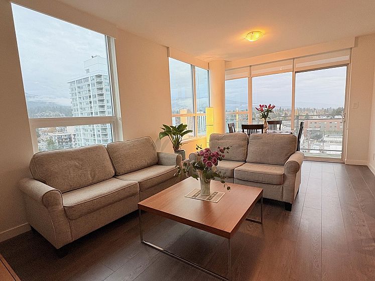 CENTREVIEW – Developed by Onni in the heart of Central Lonsdale. Enjoy breathtaking mountain, city, and ocean views from this Northeast-corner home, with beautiful morning sunlight streaming through every window. This open-concept unit offers A/C with high-efficiency heating and cooling, floor-to-ceiling windows, kitchen with custom-designed cabinetry, laminate flooring, and high-quality paneled appliances. Centreview is centrally located near groceries, restaurants, shops, transit, banks, City Hall, and the library. Luxury amenities include swimming pool, sauna/steam room, playground, huge gym and exercise area, party room, yoga room, and squash court. BONUS of 2 guest suites, a residents’ lounge, concierge service, and plenty of visitor parking.