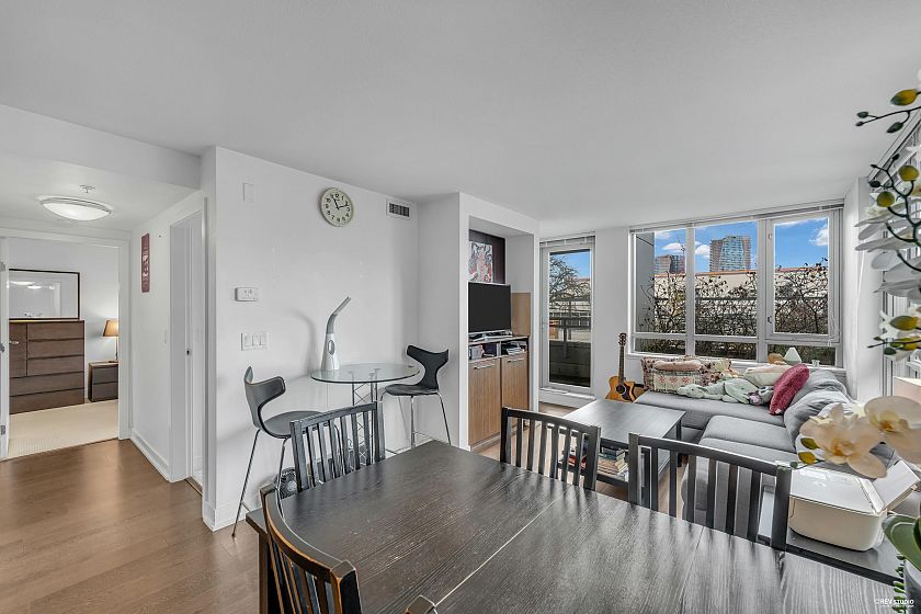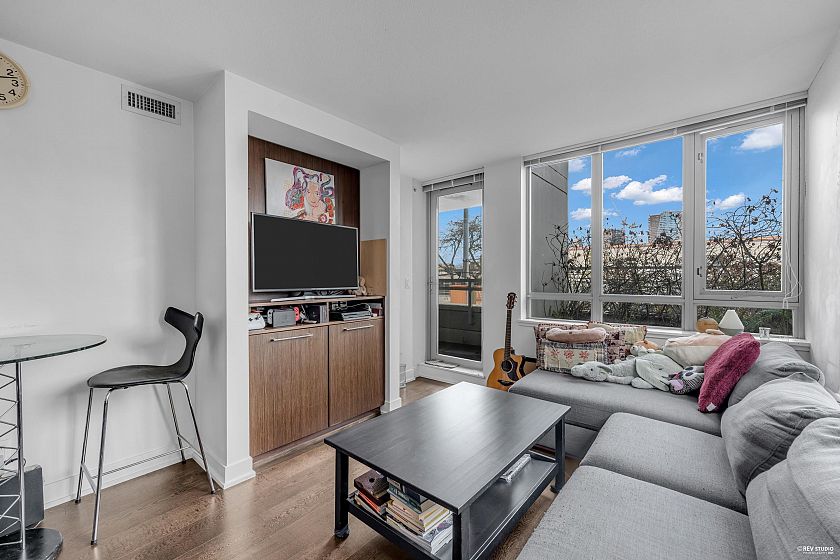 A great unit with fantastic location. Mantra done by reputable Cressey nestles in an unbeatable location & convenience. Boasting a CONCRETE Building powered w a Geothermal cooling & heating system. This home not only offers an open layout, functional kitchen equipped with modern cabinets by "award-winning" Cressey kitchen, 2 functional bedrooms, a den, a laundry room & a Balcony. Steps to the supermarket, walking distance to Granville Island, close to downtown Vancouver, surrounded by lots of variety shops & famous cafes/restaurants. An outstanding place to call home in this beautiful city. We invite you to witness it yourself. Open house Sat 22nd Nov, 2-4pm.