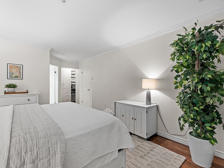 Welcome to Parkgate Manor. This beautifully reimagined ground-floor home combines quality, style, and convenience. Updated with a designer’s eye, it features stunning hardwood floors throughout, a massive primary bedroom, spa-inspired bathrooms with heated floors, a laundry room, and a spacious open layout ideal for modern living. Downsizers will appreciate the easy access and generous storage, while families will value the flexible floor plan. Parkgate Manor is a well-managed community that welcomes cats (no dogs). Enjoy the convenience of being just steps from the library, recreation centre, coffee shops, groceries, and more. The Mt. Seymour shuttle is nearby for quick access to the ski hill. Move-in ready and perfectly located, this home offers an exceptional North Shore lifestyle!