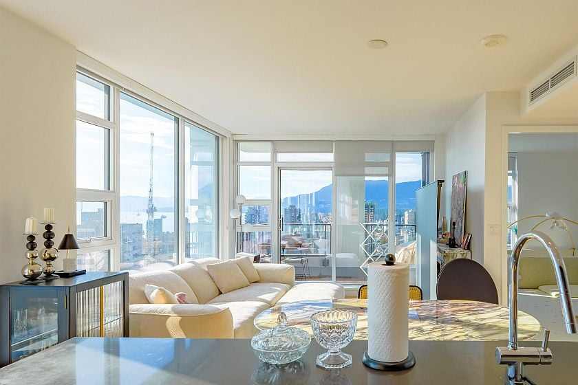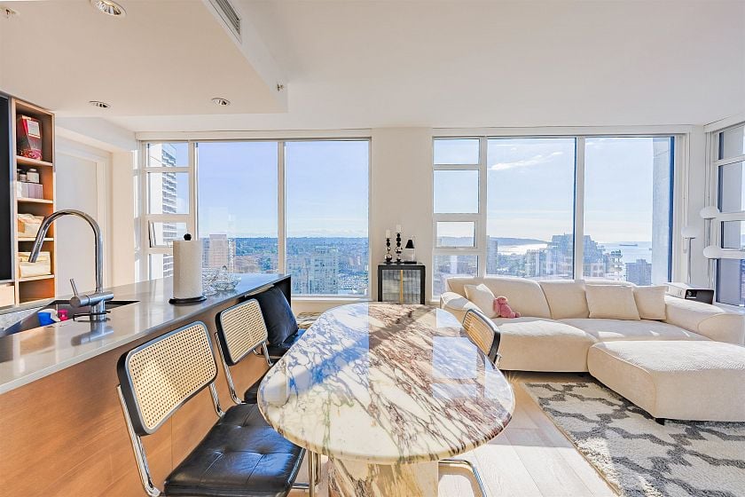 Perched high above Downtown Vancouver in the iconic One Burrard Place. South-West corner unit with breathtaking views of English Bay. Wraparound floor-to-ceiling windows flooding the home with natural light and framing sweeping ocean vistas. The open-concept kitchen features premium Gaggenau appliances, the spacious island, and seamless flow into the living and dining areas. Primary suite features a spa-inspired ensuite. Den is perfectully converted into huge walk-in-closet. Residents enjoy over 30,000 sq. ft. of world-class Club One amenities including a state-of-the-art fitness centre, indoor pool, sauna, hot tub, wine cellar, outdoor BBQ terrace, study/music rooms, 24-hr concierge and more. School catchment: Elsie Roy Elementary, King George Secondary, Kitsilano Secondary.