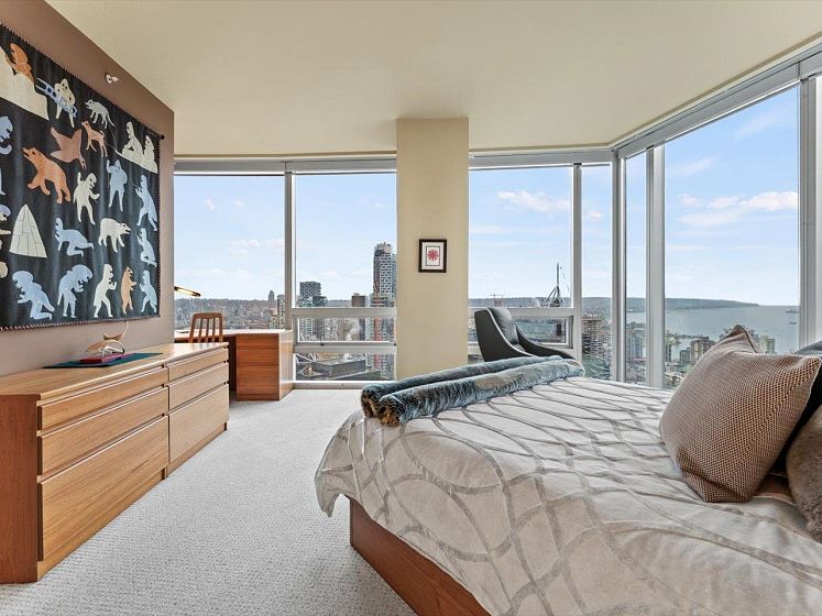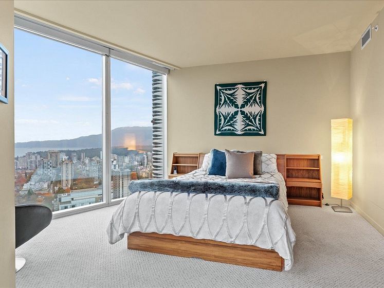 Welcome to The One Wall Centre, an architectural landmark, winner of the Emporis Skyscraper Award (2001).This 2bedroom, 2bathroom residence with 1,530 sq/ft of refined living space, showcasing breathtaking panoramic views of English Bay, Kitsilano, and extending all the way to Vancouver Island. Floor-to-ceiling windows bathe the interior in natural light.The primary suite is complemented by a luxurious ensuite featuring dual vanities, a jetted soaking tub, and a separate glass-enclosed shower. The kitchen is appointed with granite countertops, a central island, and premium Bosch and Sub-Zero appliances, Residents of The One Wall Centre enjoy access to the Sheraton Hotel’s world-class amenities and the assurance of a full-time concierge providing the highest standard of service and security