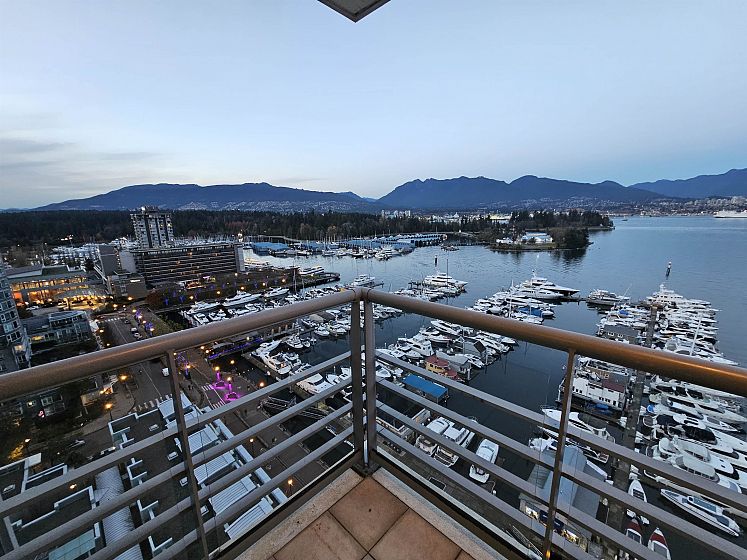 View, View, View, Waterfront Place - you can have it all in the city! This is the perfect city retreat. Whether you are entertaining, or just relaxing, the wealth of on-site amenities provide ultimate convenience. It has stunning DIRECT waterfront views of Coal Harbour, Stanley Park, N Shore Mtns & Marina. This 1,739 sq ft 2 bdrm + 2.5 bath + den fully air conditioned residence boasts inspired architecture with a spacious open floor plan and soaring floor to ceiling windows, kitchen & baths outfitted w/the finest appointments, and superior quality finishes thru-out. A luscious watery landscape w/serene waterfalls sooths the senses. Buyers looking for a dynamic space w/sophisticated design & luxe urban living experience need look no further.