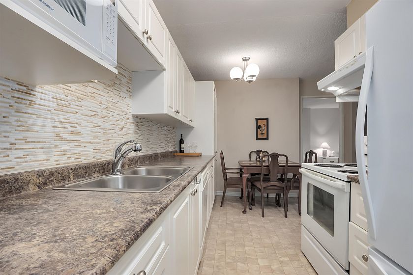 Fabulous opportunity to own one of Woodcroft's unique floor plans! There is only one plan like this in the entire Woodcroft complex. This East facing two bedroom, 1.5 bath suite offers generous room sizes and morning sun. You'll love the two separated and private balconies. Partial updates but ready for your renovation ideas and priced accordingly. You won't find a two bedroom suite over 1000 square feet at this price point! This strata has two buildings with roof replacement, hot and cold water plumbing replacement, elevator rebuilding and common area renovations. Strata has over 2M in contingency funds. 24/7 manned security. Easy walk to Lions Gate Village and shops, services, transit access and the community centre. Park Royal shopping is an easly walk along the Capilano River.