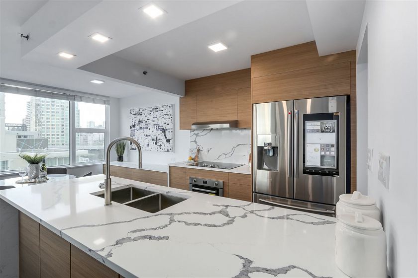 Fully Renovated in a Semi-Waterfront Building - Incredible Value! Beautiful 2 Bed / 2 Bath corner apartment at the Prestigious 888 Beach Building. Open layout floorplan with stunning views of False Creek, Marina, and Granville Island!! Tastefully updated throughout; Laminate Flooring, gourmet kitchen with endless custom cabinets, Quarts Waterfall Counters, Bosch Appliances, Samsung Interactive Fridge, Rain Shower in Bathrooms, Custom Closets Organizers, and much more! Residents at 1500 Hornby enjoy access to a well equipped exercise center, an indoor pool and spa, a beautiful garden, very elegant lobby and waiting area, and Concierge Service! Enjoy the seawall at your doorstep, with a False Creek Sea Taxi Docks steps away! This is Yaletown Living at it's finest. 1 Parking, 1 locker.