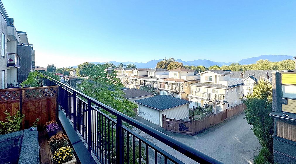 Location! Location! Location! Popular "Scena" building in the heart of Kingsway & Victoria Area. Spacious 2-Bdrm, 2 full bath + DEN home on the quiet north side of the complex, w/gorgeous views of the North Shore mtns.Large living room opens onto unique massive 316sq ft private garden terrace-your own oasis in the city-perfect for entertaining! High ceilings, large chefs kitchen w s/s appl & granite counters. Mbdrm has full en-suite and walkin closet. In-suite laundry & large in-suite storage can double as a small home office. 1 Parking stall included. 2 pets are okay. Steps to T&T Market & Nanaimo Skytrain nearby, as well as Norquay Elem & Gladstone Secondary. Shops and restaurants all at your doorstep, & bus stop a few steps away. Open House Sat Nov 22nd 2 - 4