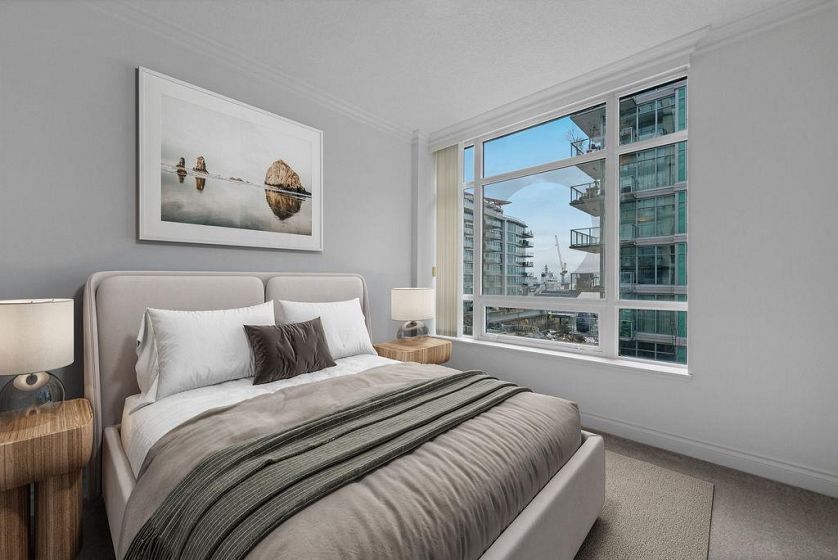 Bright South facing 2 Bedroom plus a Den. Never been lived in. The bedrms are located on opposite sides, and both have ensuites. The primary bedrm has a big walk-in closet, a spa like 5-piece ensuite and its own balcony. The spacious balcony off the living room offers 255 sq.ft. of sunny outdoor space. This home has new carpet in the bedrooms and a new SMEG fridge. The kitchen also features a Bosch dishwasher, oven and gas cook top. You will enjoy the carefree lifestyle of living steps to recreation, shopping, restaurants, Sea bus and the waterfront. Atrium has a 3,000 sq.ft amenity room for drop in or larger gatherings, featuring a full kitchen, games & lounge areas. Atrium owners also enjoy use of the fitness centre next door with its gym, whirlpool, indoor lap pool, steam room & sauna.