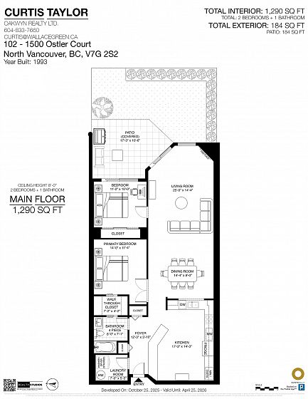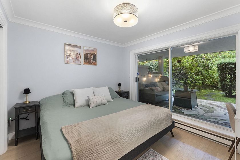 Welcome home to Mountain Terrace, a concrete-framed hidden gem nestled in North Vancouver’s natural surroundings. This ground-level corner suite offers 1,290 sq.ft. of open concept living with an expansive living room and dining area, 2 large bedrooms and 1 bathroom, a house-sized kitchen, engineered hardwood flooring and a cozy gas fireplace. Step outside to your private covered patio and take in lush greenbelt views, ideal for a morning coffee or evening gatherings. A fantastic location for outdoor lovers, with world-class walking and biking trails just steps away. Quiet and secluded, yet minutes from Parkgate Village, Deep Cove, golf courses, schools and more. One pet allowed, two side-by-side parking stalls included. Call today! OPEN November 30 (Sun) 2:00 - 4:00 PM.