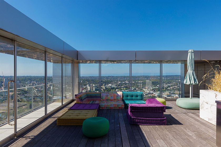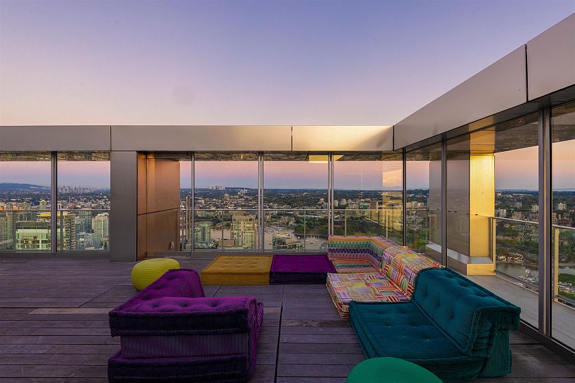 Experience unparalleled sophistication in this remarkable Penthouse at Vancouver House—an exceptional expression of quiet luxury within one of the city’s most iconic landmarks. Signature Shinnoki Oak walls & chevron white oak floors set a refined tone throughout, while floor-to-ceiling windows frame 59th floor views. The living area features Venetian plaster ceilings, silk drapes, & a Flexa lighting system for ambiance, while the Boffi Italia kitchen boasts Miele appliances & marble countertops. Upstairs, a Porro-designed office & serene bedrooms await: the primary suite includes a lounge & spa-like marble ensuite w/ Mount Baker views. A 950 sqft rooftop terrace—with a Viking kitchen, hot tub, elevator & English Bay vistas—crowns this designer masterpiece. A discerning lifestyle awaits.