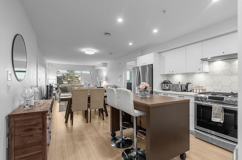 ?? BEST-PRICED 2 BEDROOM UNDER 10 YEARS OLD — INCREDIBLE VALUE! ?? Charming 2 Bed, 2 Bath Condo in North Vancouver's Lynn Creek. Discover this efficiently designed, bright, south-facing home in the up-and-coming Lynn Creek area. This boutique West Coast Contemporary building offers an open concept layout with bedrooms on opposite sides, each with ensuite bathrooms. Enjoy in-floor radiant heat (concrete), a double vanity in the master bath, a 5-burner gas cooktop, a convection oven, Low-E double-glazed windows, and very low strata fees. Walking distance to trails, shops, restaurants, brew pubs, a recreation center, and more. Steps from Phibbs Exchange with connections to the Seabus and Canada Line. Includes 1 large private storage space and 1 parking.