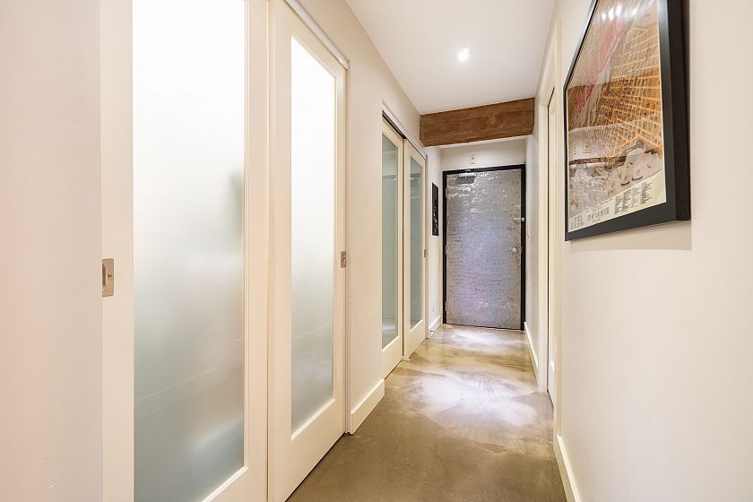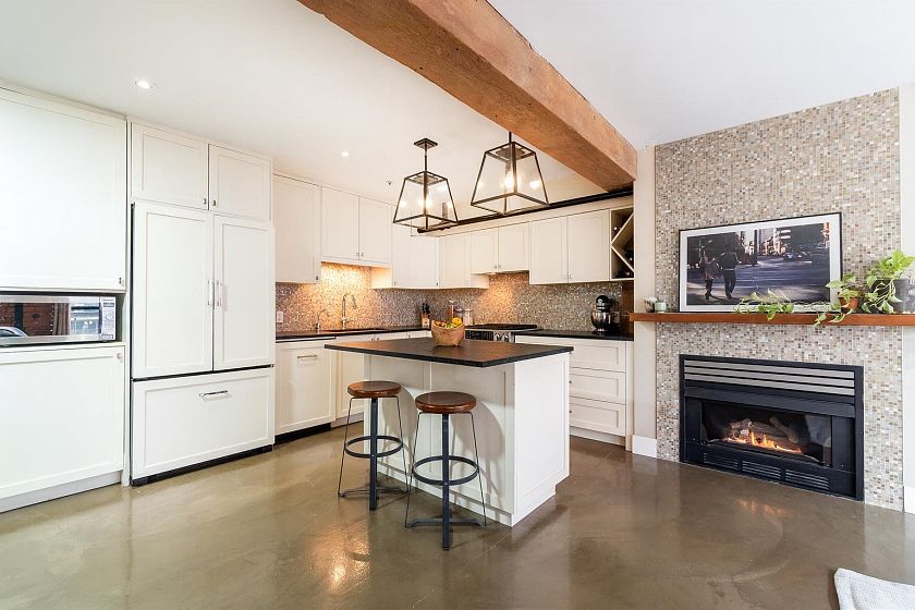 Renovated New York style 1 bedroom + den loft (2nd bedroom has no window) at the New Yorker. Spacious open floorplan with exposed brick, refinished concrete floors, floor to ceiling windows, and sandblasted timber beams. Updated kitchen with custom cabinetry, gas range, and paneled Jenn-Air appliances. Spa-like ensuite bathroom with double sinks, extra-large shower, plus a guest powder room. Huge his/her style custom California Closet walk-in in the main bedroom. Cozy gas fireplace, built-in bar/workstation, and plenty of closet space for storage. Common rooftop deck equipped with gas BBQ & lounge seating. Quiet side of building, yet right in the heart of Yaletown's entertainment and shopping district. Parking not included but can be rented nearby. OPEN HOUSE SATURDAY DEC 6th 2-4pm