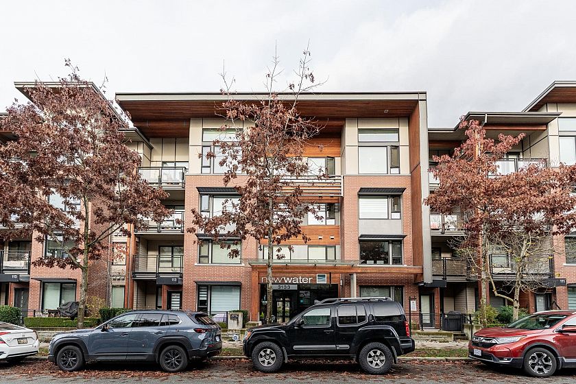 2 Parking spaces included! ($30,000 VALUE) River District 2 bedroom plus tech room and 2 bathroom home at New Water, a Gorgeous Westcoast Inspired development by Polygon. Well maintained home including 5 piece ensuite with separate soaker tub and seamless glass shower, has everything you have ever wanted and more! Featuring a Chef's kitchen with SS Bosch appliances, Fisher & Paykel fridge, granite counters through-out & lots of cabinet space. Open concept living space with wide plank laminate flooring leads you out to the spacious covered patio perfect for entertaining. Well maintained complex with fully equipped exercise studio and meeting room. Quick possession possible.