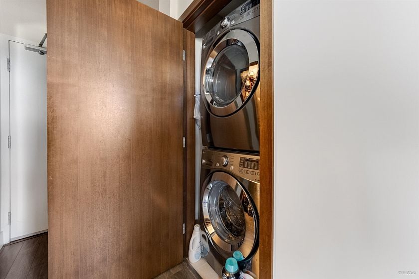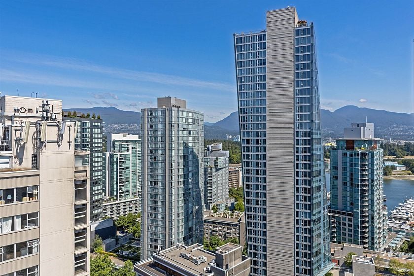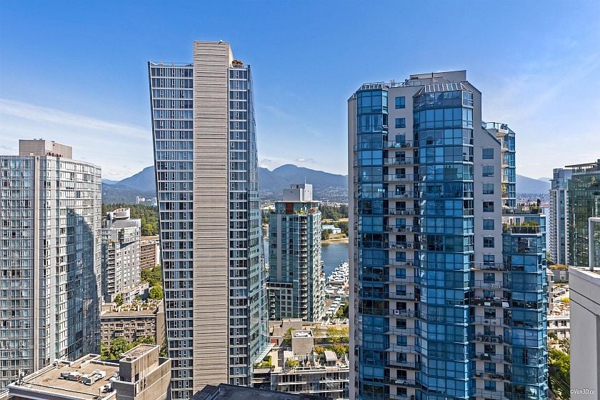 Rare Coal Harbour Penthouse | Stunning 2-level home with 180° panoramic ocean & mountain views from every room! This bright, west-facing suite features 9'5” ceilings, solid walnut doors/frames, new Miele & LG appliances, granite counters, and a custom walk-in closet. Enjoy sunsets from your spacious balcony overlooking English Bay & the North Shore mountains. Bedrooms are privately tucked upstairs; main living below. “The George” is a well-run building with gym, bike room, live-in caretaker & strong contingency fund. Steps to Stanley Park, seawall, & world-class dining. 2 Large side-by-side parking + 1 locker included.
