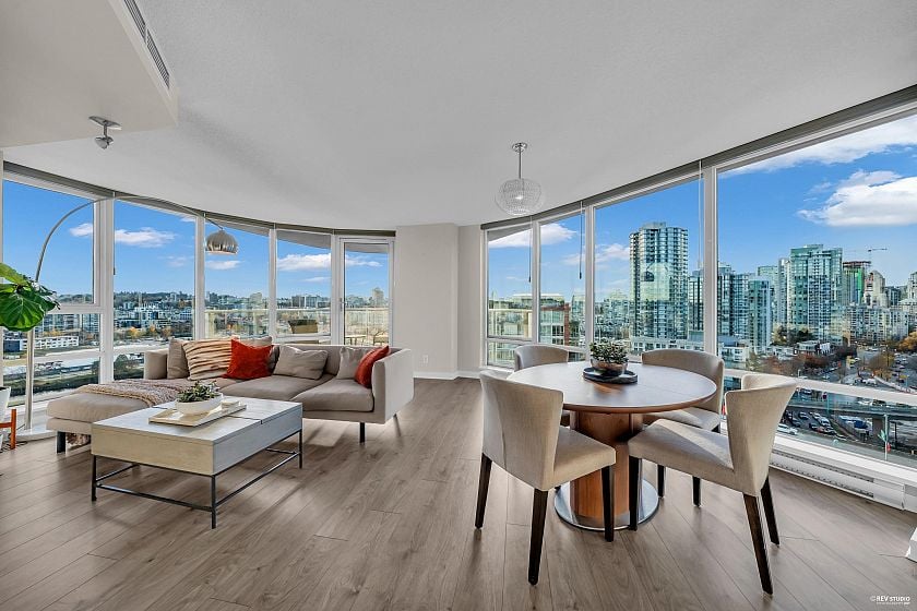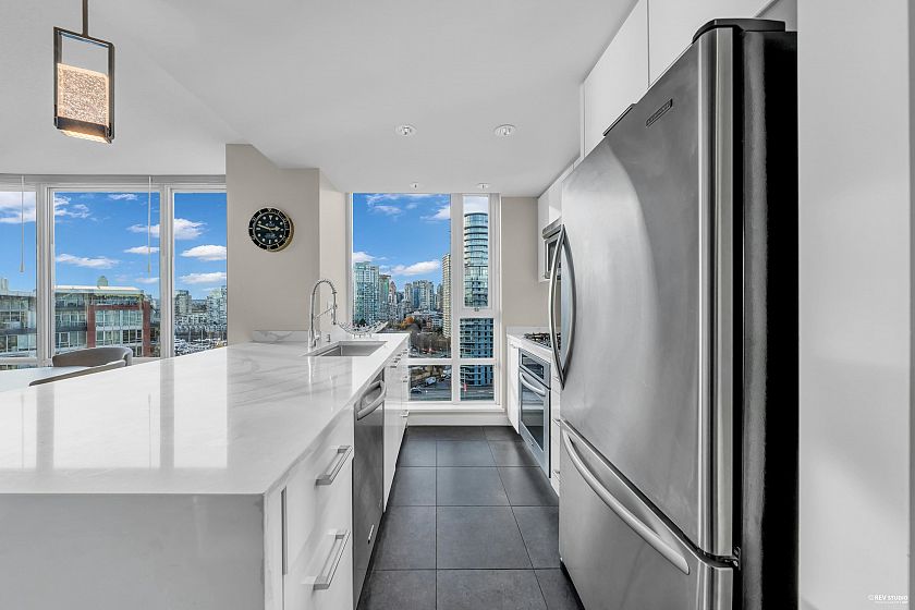 Live the ultimate Yaletown lifestyle in this spacious 2 Bed + DEN + Flex at the Mariner. Nearly 1,300 sq.ft. of bright, open living with wraparound windows and a balcony overlooking beautiful False Creek. Both bedrooms feature walk-in closets, plus updated flooring/cabinets/kitchen Ctop + A/C for year-round comfort. Step outside to the Seawall, parks, dining, stadiums, Costco and the new casino. Enjoy resort-style Concord amenities—pool, gym, bowling alley, theatre, concierge, kayaks and more. Healthy CRF. Pets and rentals welcome. Simply move in and savour the lifestyle. By appointment pls.