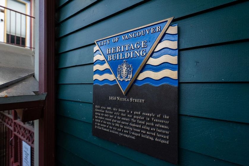 When they converted this 1909 heritage building, they kept the entire ground floor as one residence — something that almost never happens. Most get chopped into rentals. This one stayed whole. Windows on all four sides. No shared walls. Bay windows, oak floors, stained glass, and a 125 sq ft covered veranda. You're not in a tower or typical condo — you're in an actual house. 2 bed, 2 bath, 858 sq ft with underground parking, massive crawlspace storage plus large locker, and pets welcome. Only two heritage units exist in the building. This is the only one under 1,000 sq ft. Extremely well-run strata. Fully rebuilt 1995 with modern systems while preserving character. Steps from the seawall, Stanley Park, English Bay, and the best dining on Denman and Robson. Open House Sunday, Dec 7, 2-4pm.