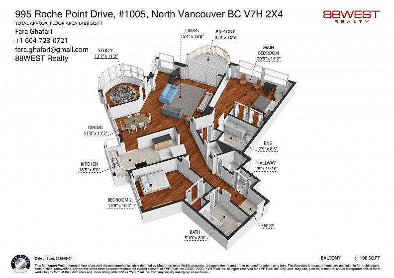 WOW – What an Incredible 270 degree VIEW from every window at this SUB-PENTHOUSE CORNER unit at Roche Point Tower. This spacious 1489 Sqft offers two large bedrooms plus a Den/Study ; two full bathroom, huge balcony plus TWO PARKING and a large storage locker. Conveniently located within walking distance to Parkgate mall; restaurants; public transit; schools ; Parkgate Community Center yet easy access for outdoor enthusiast with proximity to GOLF COURSE; DEEP COVE ; SKIING; and walking trails. This well looked after building offers a Gym; Party Room; Sauna and Hot tub. Recent exterior enhancements encompass a brand-new parkade membrane and a complete landscaping overhaul. Freshly painted and ready to move in. A fantastic place to call home.