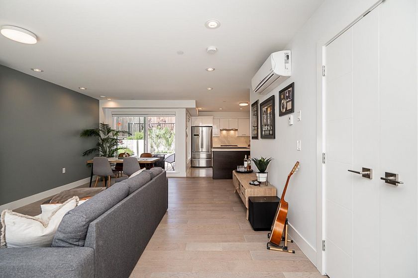 Welcome to Floral Villas – a boutique collection of exclusive residences in a vibrant neighbourhood. This well-maintained building offers low strata fees. This bright corner end unit boasts South and West exposure, ground-level entry, open floor plan, gourmet Bosch kitchen, A/C, radiant in-floor heating, spa-inspired baths, and a sunny patio perfect for entertaining. A rare find!