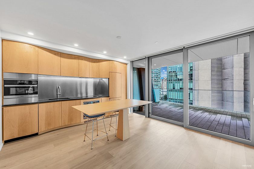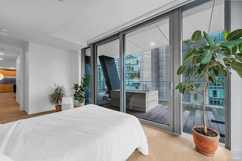 Welcome to Alberni by Westbank, designed by the renowned Japanese architect Kengo Kuma! The building features a Kengo Kuma-designed Fazioli piano, moss garden, 25-foot indoor pool, hot tub, sauna, a 3,000 sq. ft. fitness room, listening lounge, private wine storage, and 24-hour concierge. This 2-bed, 2-bath unit offers 1,094 sq. ft. of indoor space and nearly 700 sq. ft. of outdoor space. The kitchen includes custom wood cabinets, Miele appliances, and a Kengo Kuma-designed island. The spacious living room features floor-to-ceiling windows with motorized blinds. The oversized balcony comes with a Japanese stone garden and an outdoor bathtub. Just steps away from Stanley Park and the Coal Harbour Seawall. Bonus: 1 parking,1 storage locker and 2 bike lockers. Don’t miss this opportunity!