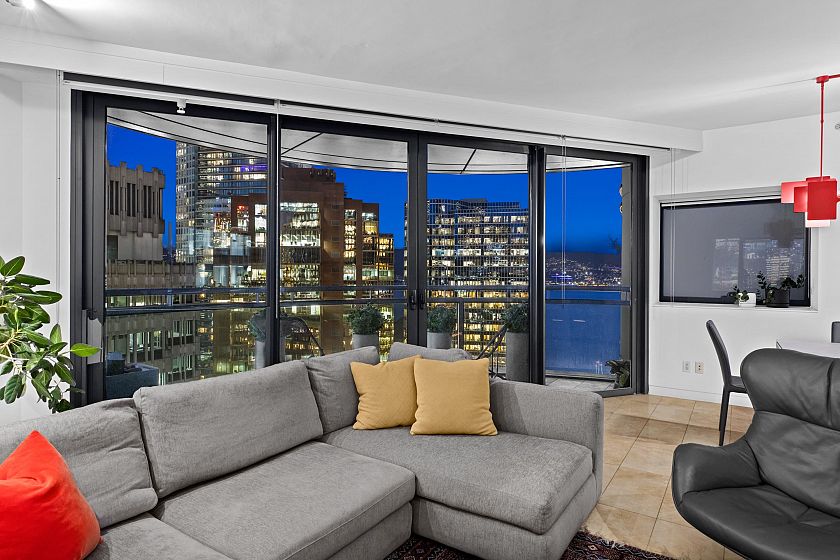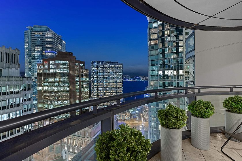 Experience modern luxury and tasteful elegance at the Jameson House, an iconic concrete high-rise designed by award-winning Foster & Partners. This BOSA-built 1,027+ sqft 2 bed, 1.5 bath unit boasts over-height 9ft ceilings, city/water views, and a large 86 sqft balcony for the perfect inside/outside living space. High-end finishes throughout, including Italian kitchen cabinets & appliances by Gaggenau & Sub Zero. The open-concept layout is perfect for entertaining, and 24-hour concierge service and automated valet parking ensure both safety and convenience. Situated in the highly sought-after Coal Harbour financial district, this unit offers a unique combination of style, location, and functionality. Don't miss out to make this stunning unit your new home. Book your private showing today