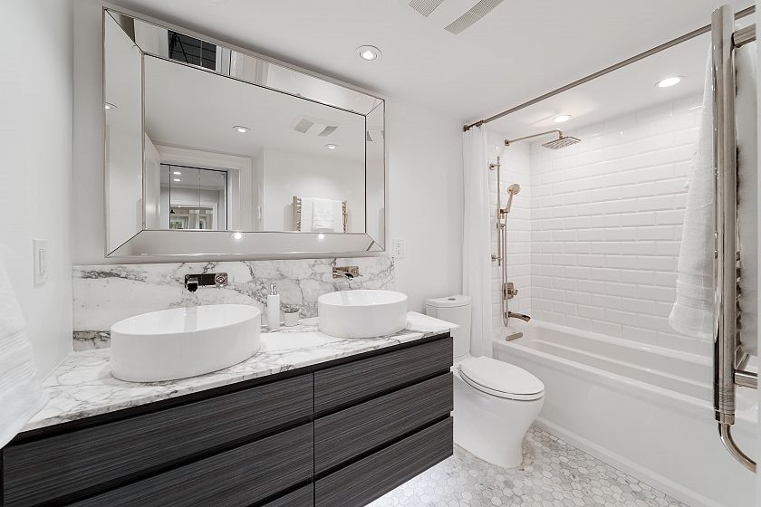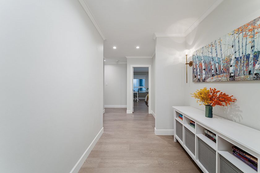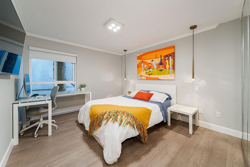 UNIT: This superb 2bed, 1bath home sits on a bright corner, welcoming natural light from both the patio & side exposure designed w/ a functional layout. Thoughtfully renovated throughout, fts a marble backsplash, breakfast-bar accent, upgraded vanity countertop, high-end kitchen S/S appliances, custom kitchen cabinetry, Corian countertops w/ an integrated sink, engineered hardwood floors, heated bathroom tiles & towel warmer, all-new built-in closets & cozy breakfast nook w/ additional built-in storage. Truly move-in ready. BUILDING: Worry-free building w/ major updates completed incl: roof, windows, balcony membrane, electrical & plumbing. LOCATION: Nestled on a quiet, tree-lined street just steps to restaurants, schools, shopping, English Bay, the dog park & so much more.